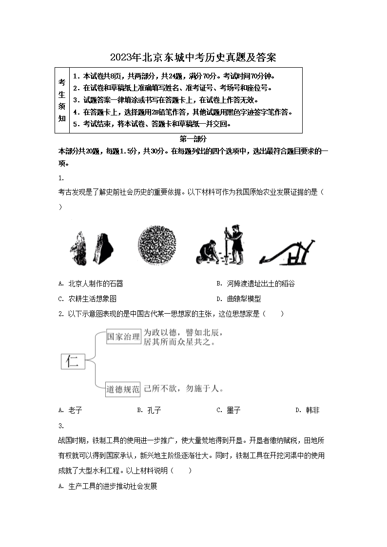 2023年北京东城中考历史真题及答案(Word版)08-12