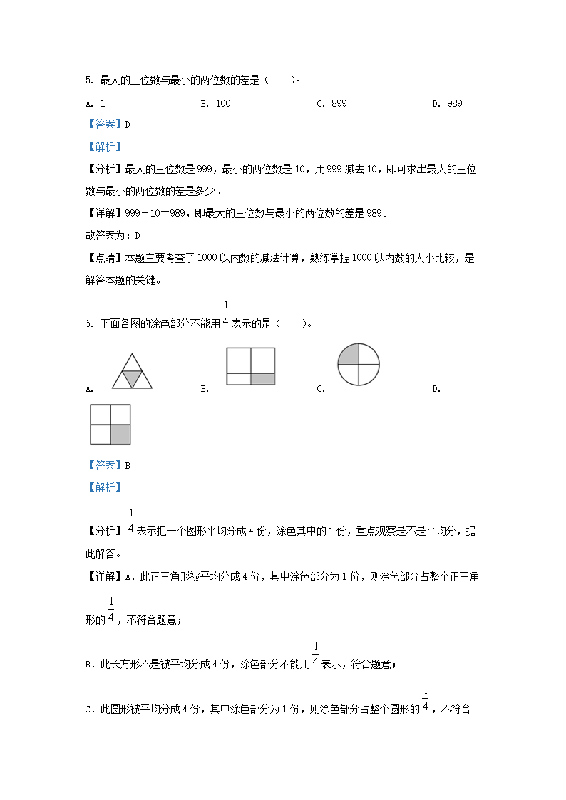 2022-2023学年福建省三明市大田县人教版三年级上册期末考试数学试卷及答案(Word版)09-15