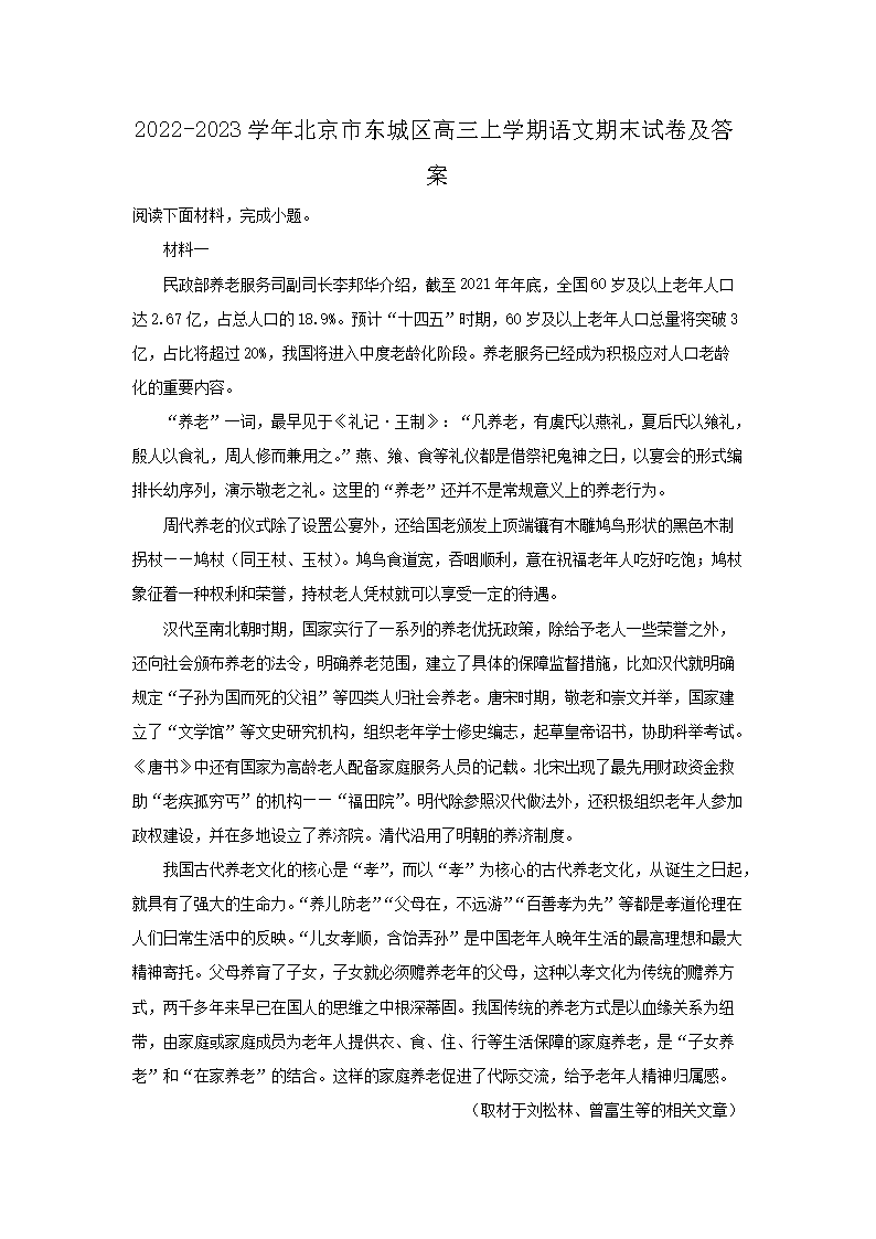 【文档预览】 文档大全网整理发布2022-2023学年北京市东城区高三上学期语文期末试卷及答案(Word版),前五页预览如下:
