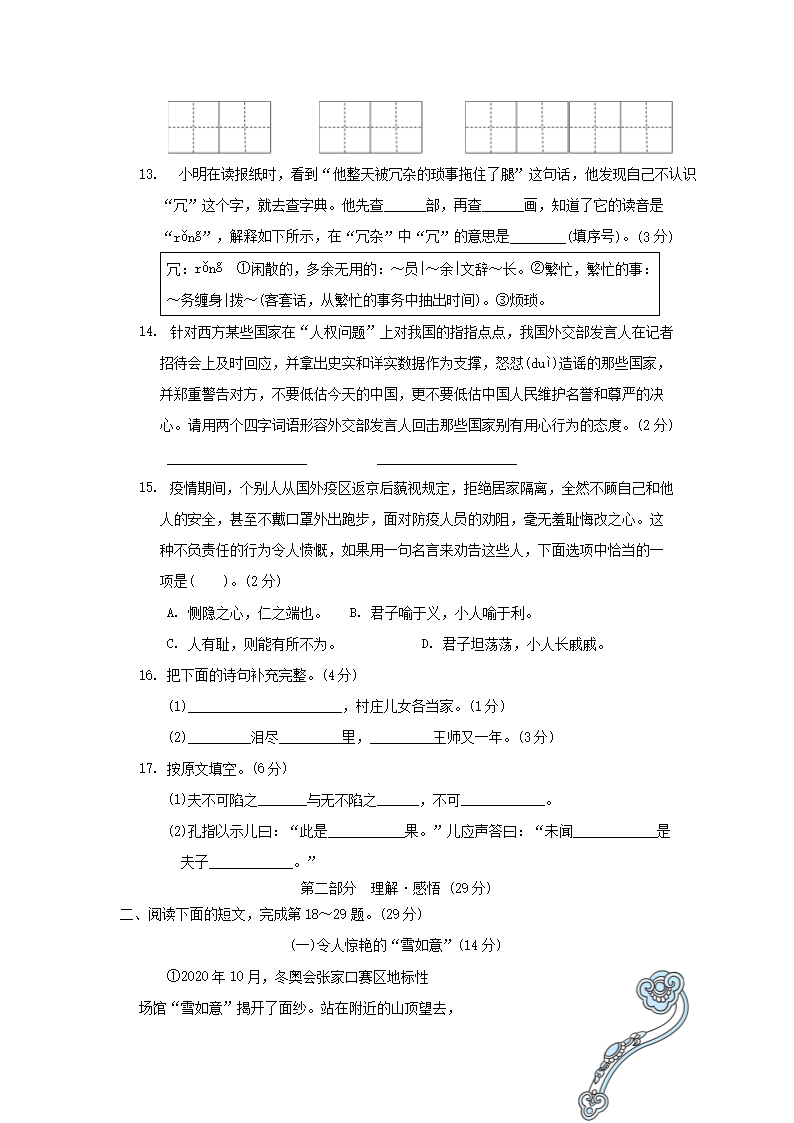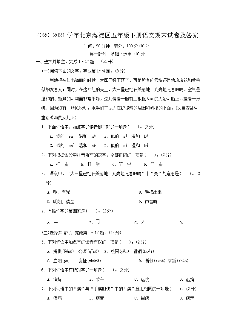 2020-2021学年北京海淀区五年级下册语文期末试卷及答案(Word版)06-20