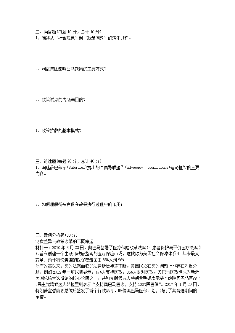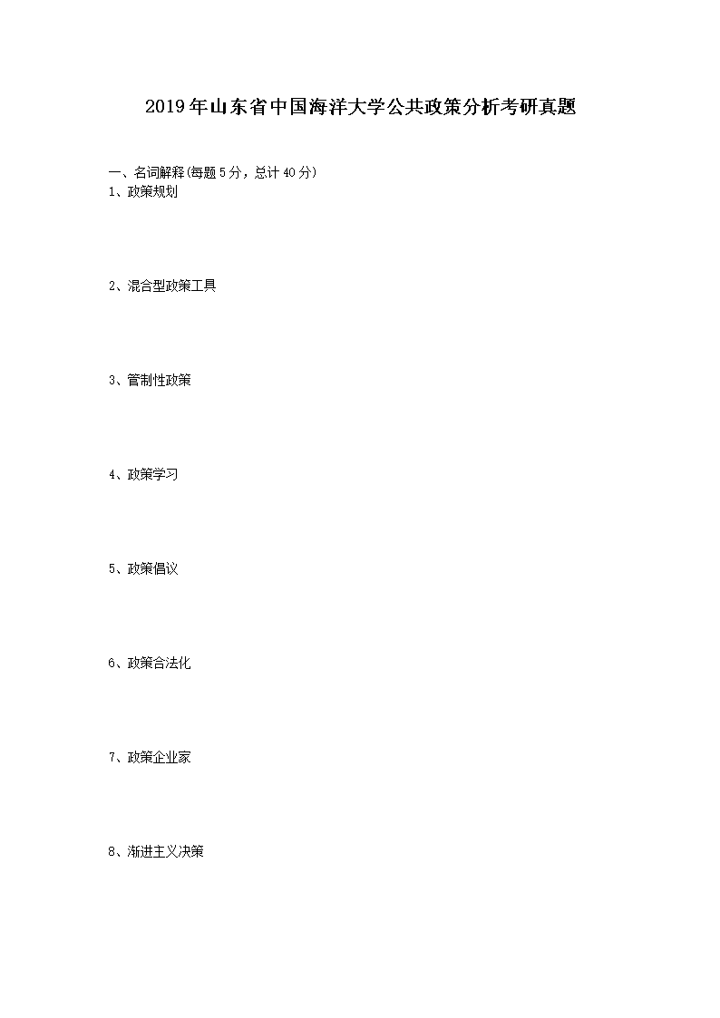 2019年山东省中国海洋大学公共政策分析考研真题(Word版)10-10