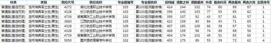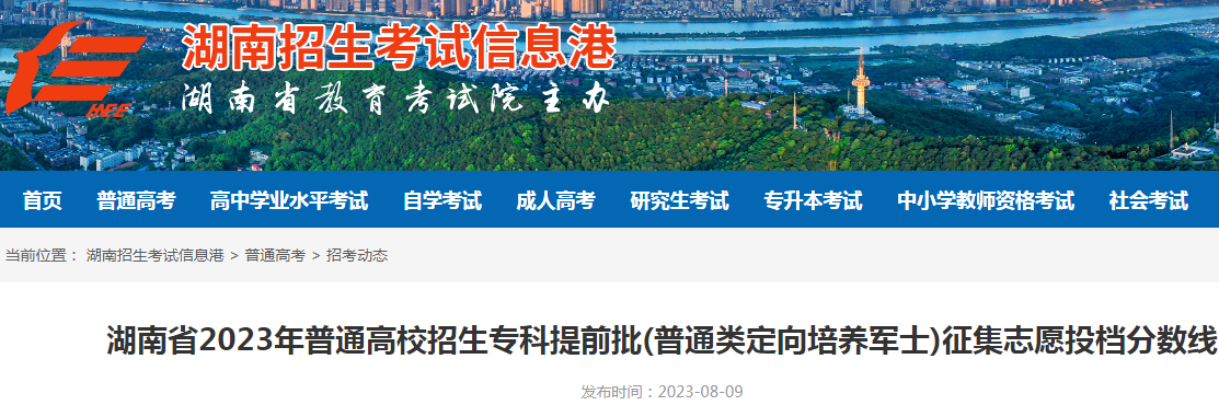 湖南省2023年专科提前批(普通类定向培养军士)征集志愿投档分数线公布08-11