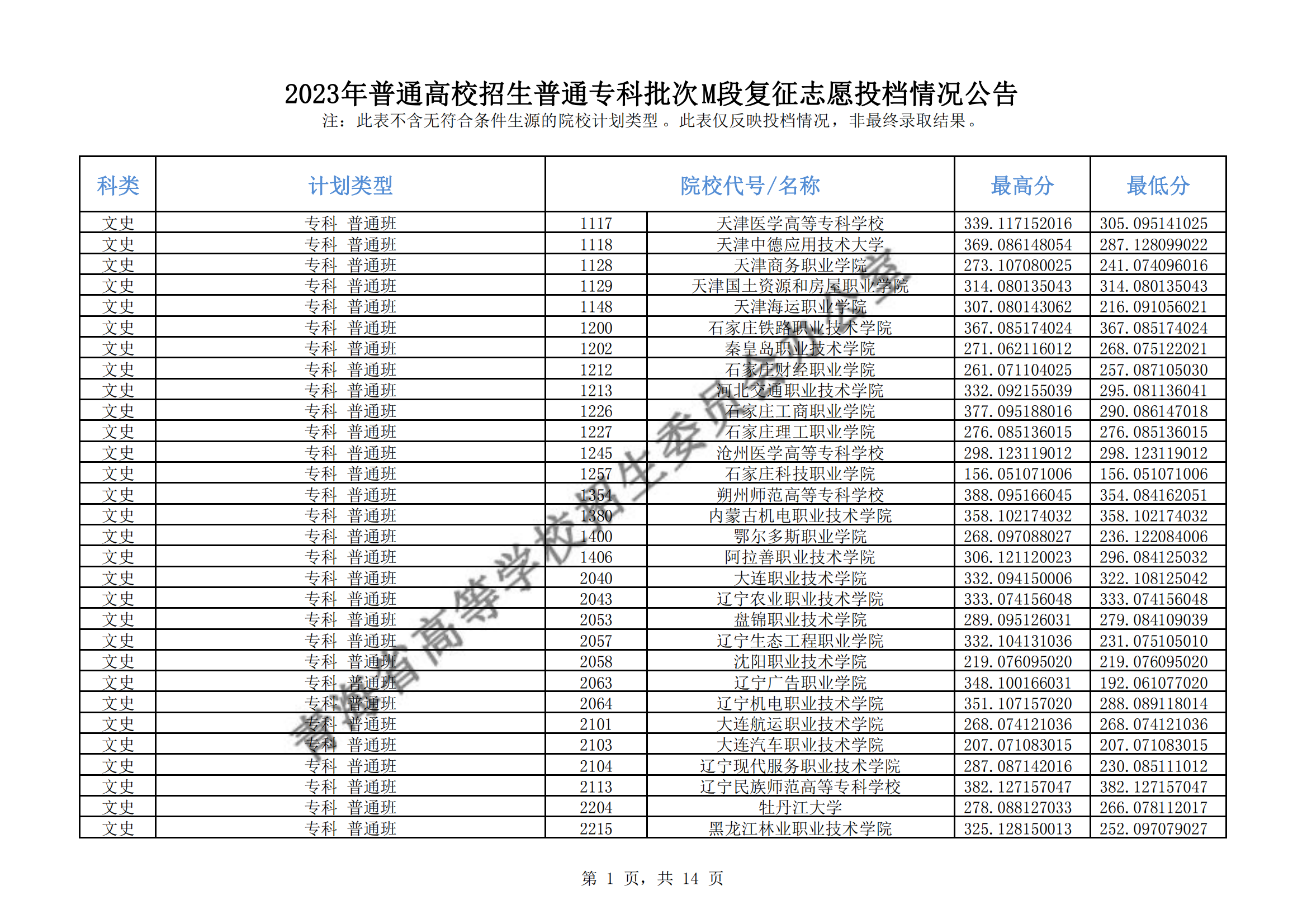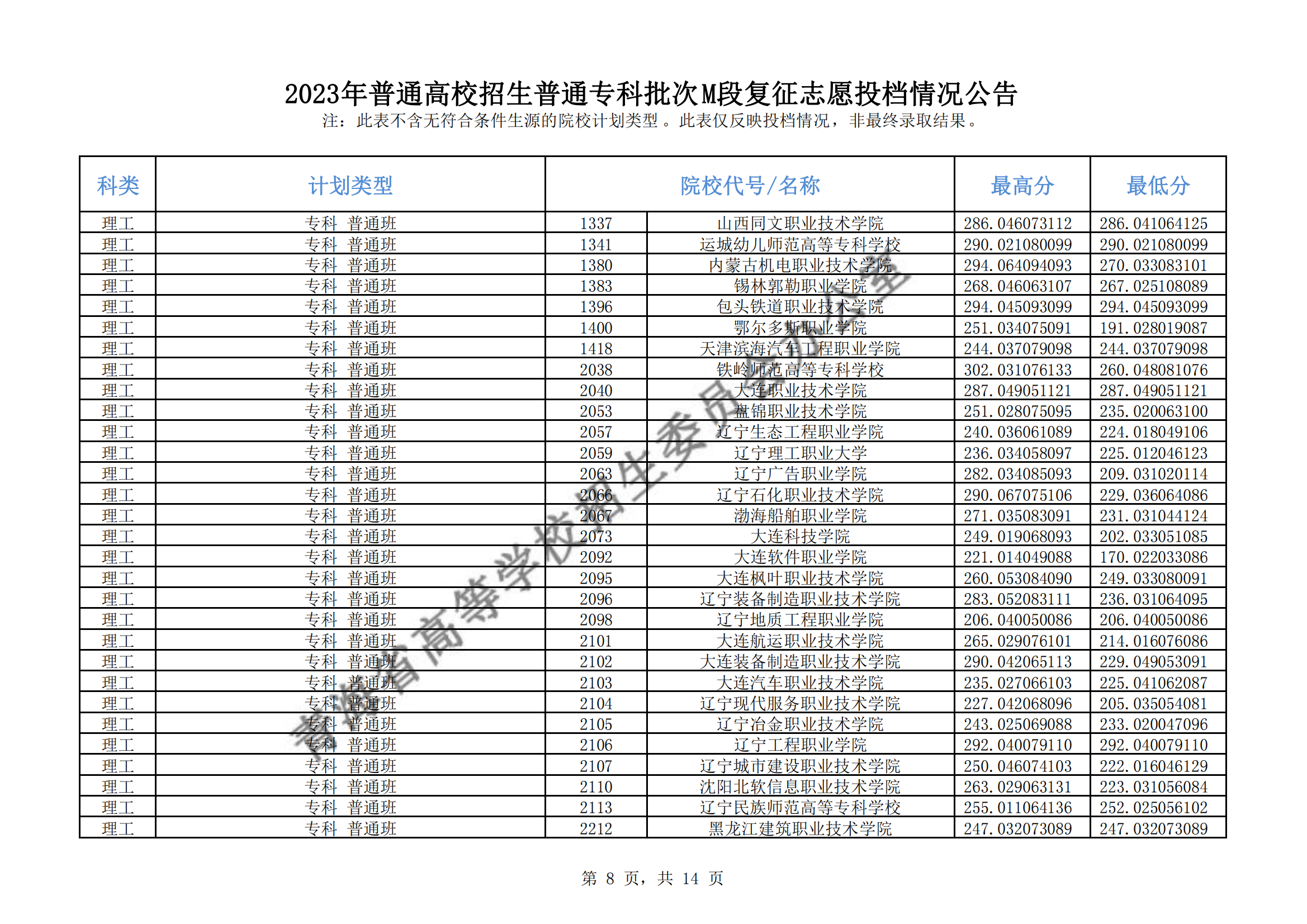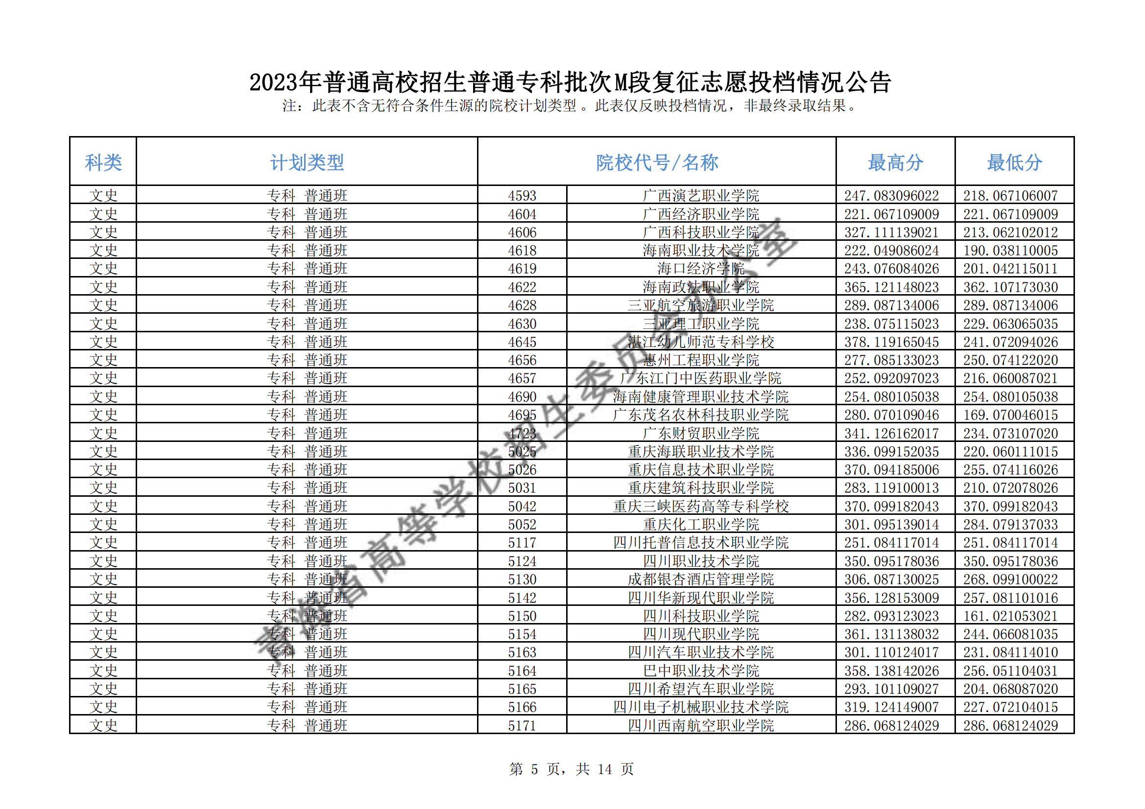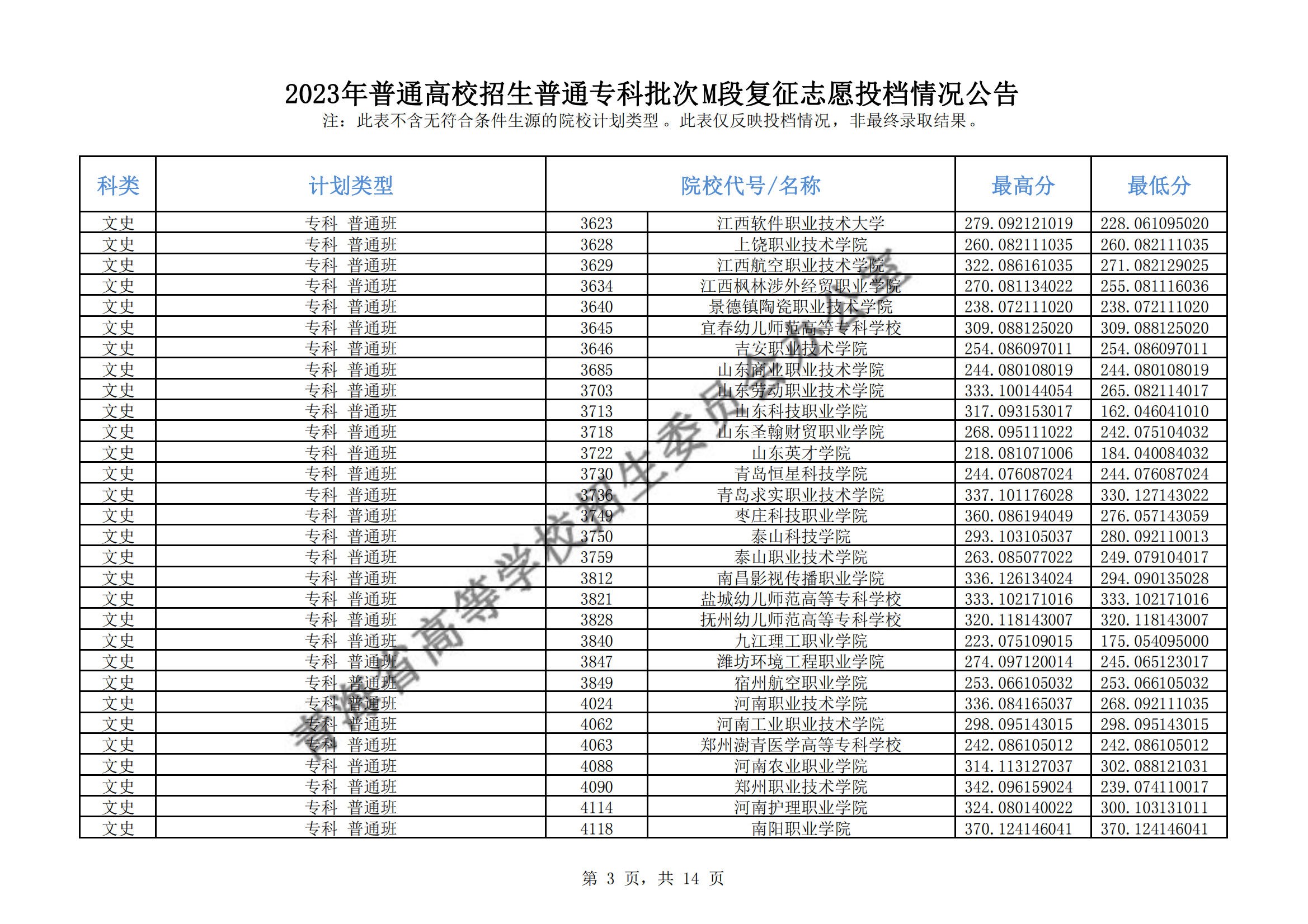 青海省2023年普通高校招生普通专科批次M段复征志愿投档情况公告08-22