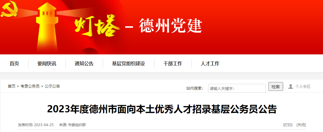 原文标题:2023年度德州市面向本土优秀人才招录基层公务员公告