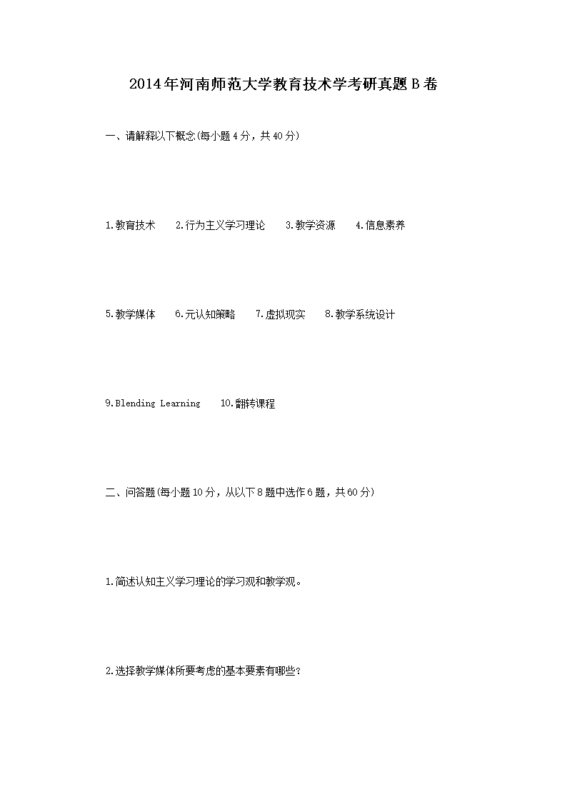 2014年河南师范大学教育技术学考研真题B卷(Word版)06-10