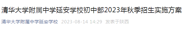 陕西清华大学附属中学延安学校初中部2023年秋季招生实施方案08-15