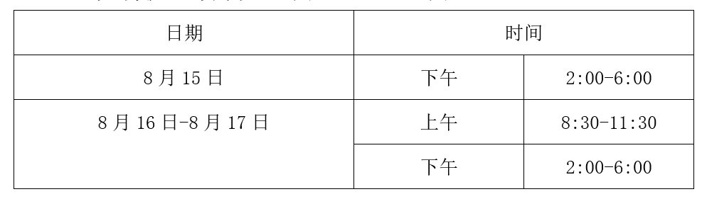 (二)现场提交材料(8月15日—8月17日)
