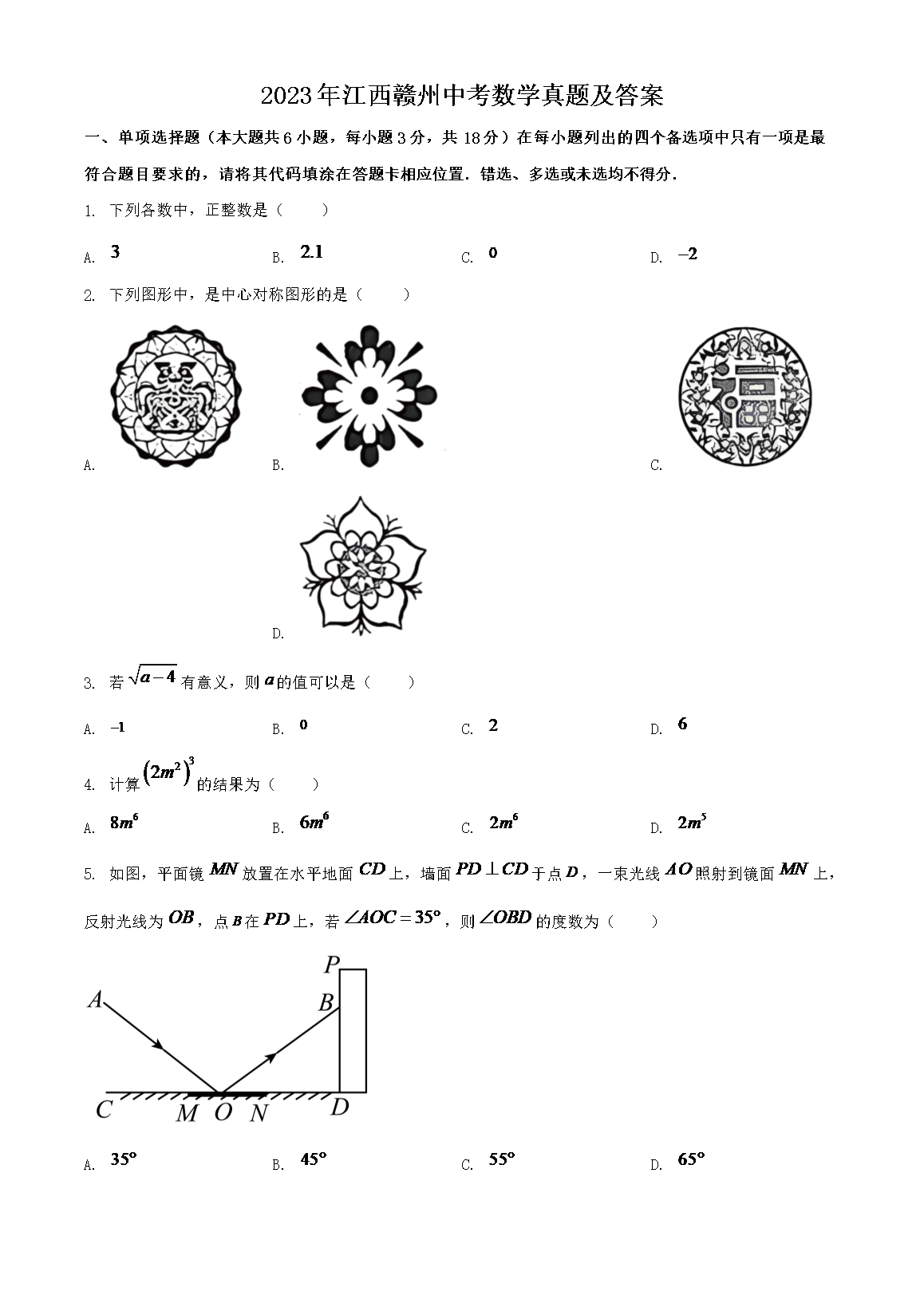 2023年江西赣州中考数学真题及答案(Word版)06-21