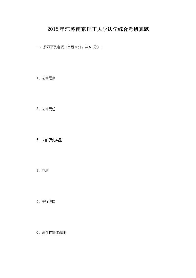 2015年江苏南京理工大学法学综合考研真题(Word版)06-29