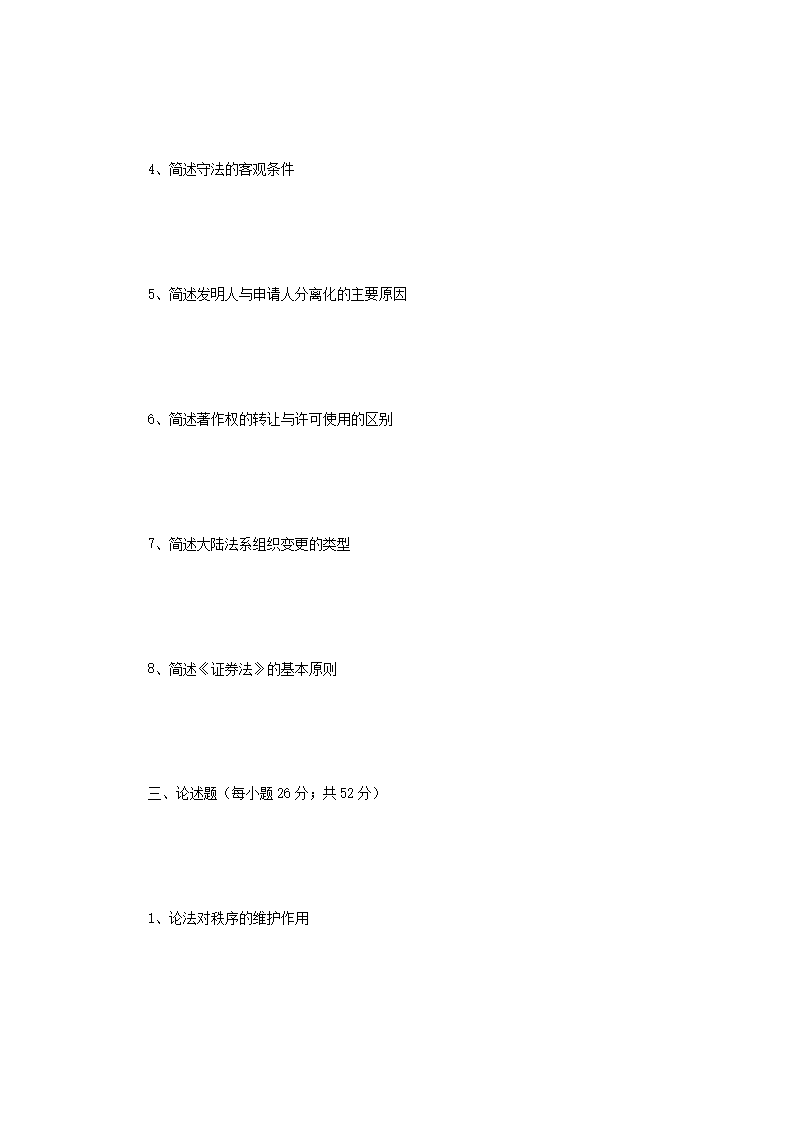 【文档预览】 文档大全网整理发布2015年江苏南京理工大学法学综合考研真题(Word版),前五页预览如下: