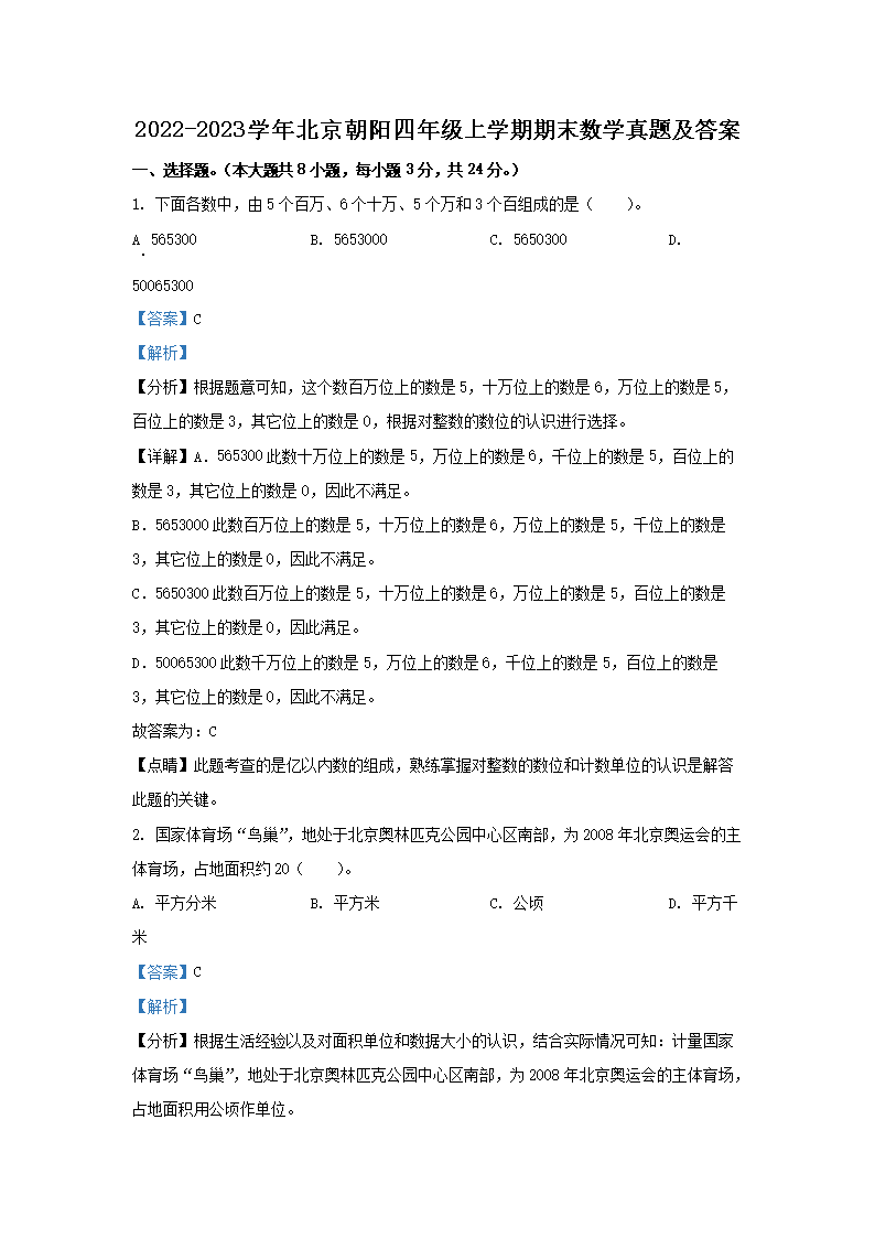 【文档预览】 文档大全网整理发布2022-2023学年北京朝阳四年级上学期期末数学真题及答案(Word版),前五页预览如下: