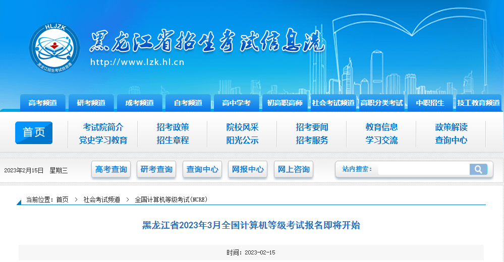 2023年3月黑龙江计算机等级考试时间:3月25日-27日02-16
