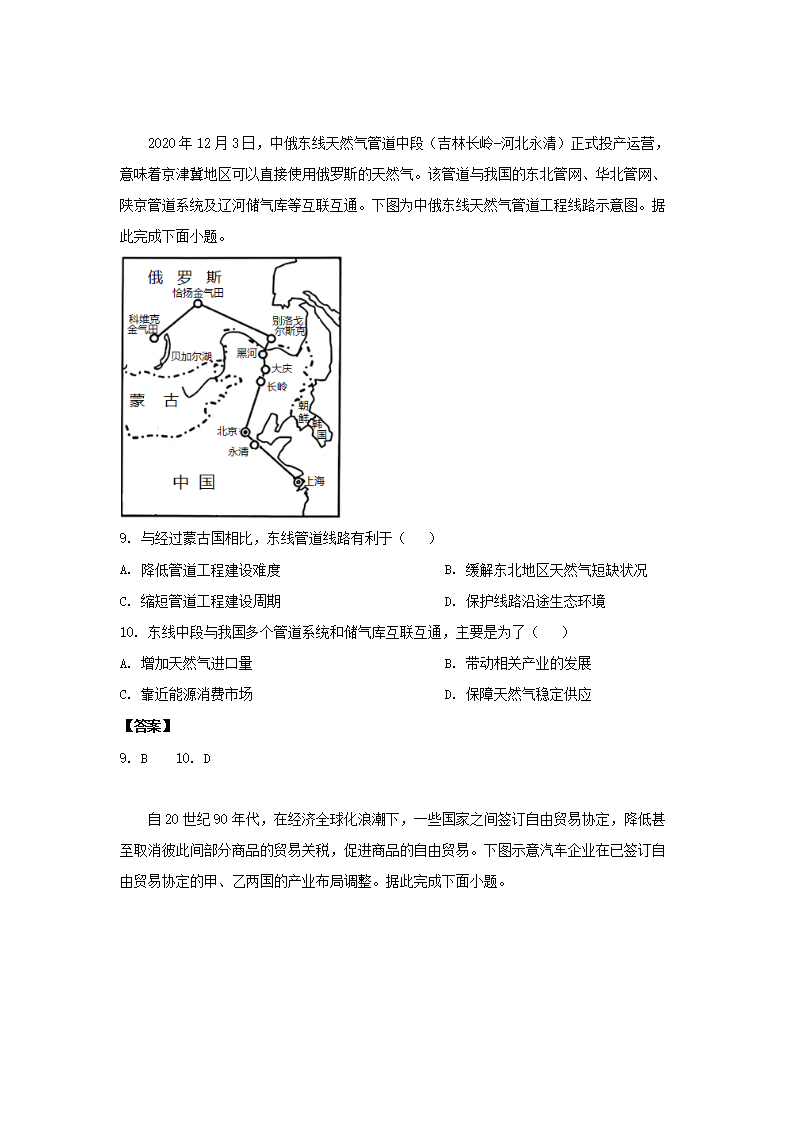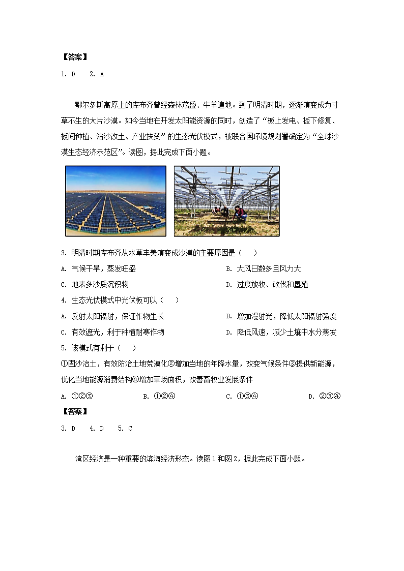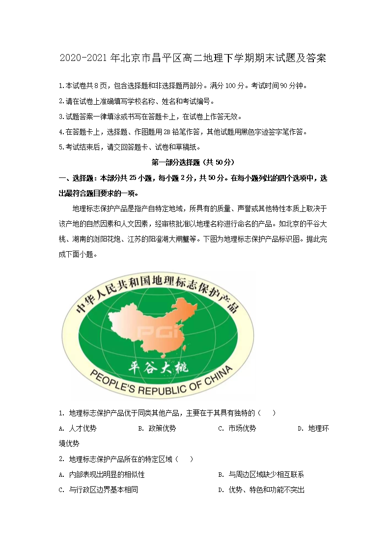 2020-2021年北京市昌平区高二地理下学期期末试题及答案(Word版)08-01