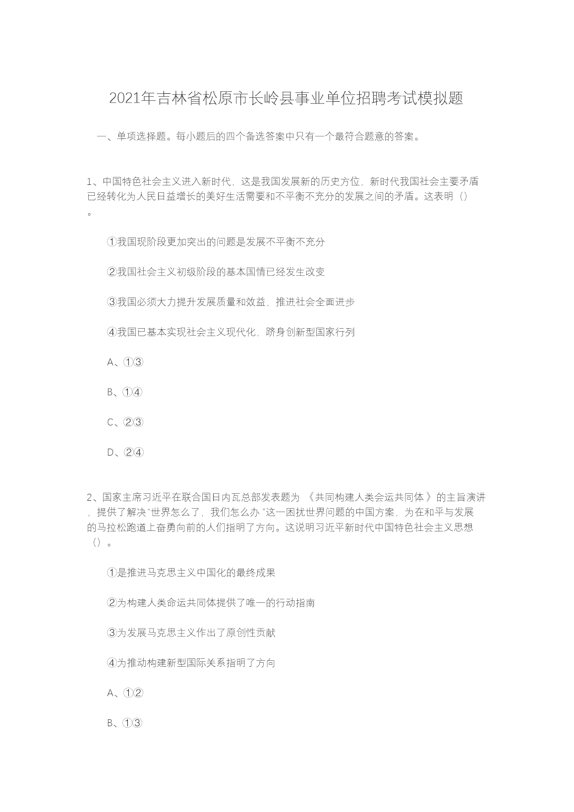 2021年吉林省松原市长岭县事业单位招聘考试模拟题(Word版)10-21