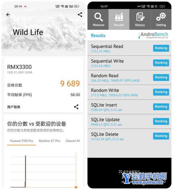 闪存测试中,真我 GT2 Pro 顺序读取速度达到 1752MB / s,顺序写入速度达到 1214MB / s,UFS3.1 水准。