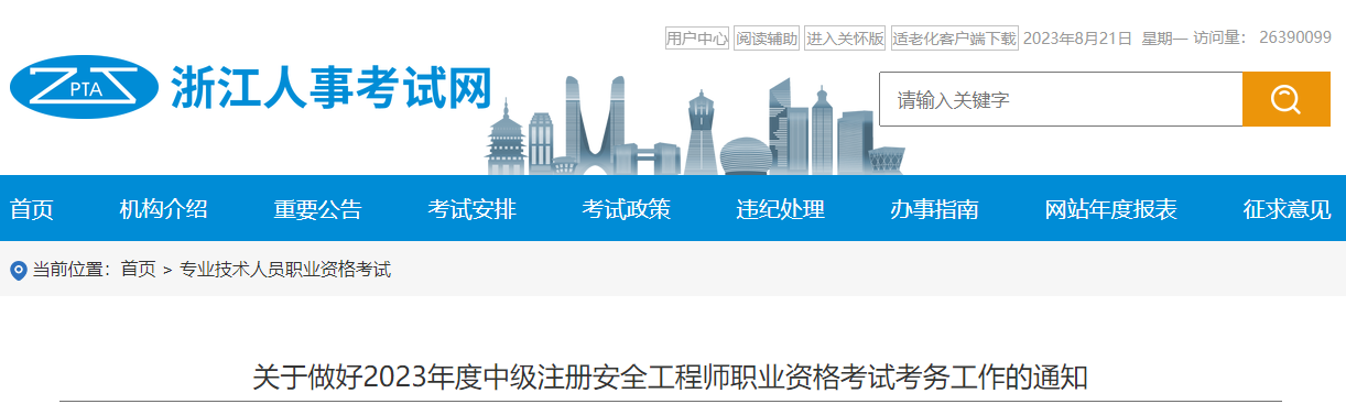 【#安全师考试# 导语】©文档大全网从浙江人事考试网获悉,《2023年浙江中级注册安全工程师职业资格考试考务工作通知》现已公布,©文档大全网从公告中了解到,符合条件的考生可在8月21日-30日进行网上报名,2023年浙江中级安全工程师报考条件如下:
