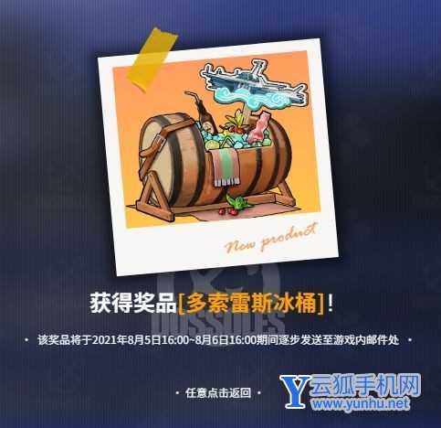 进入本次活动网页并登陆游戏账号即可获得【多索雷斯冰桶】(如下图所示)