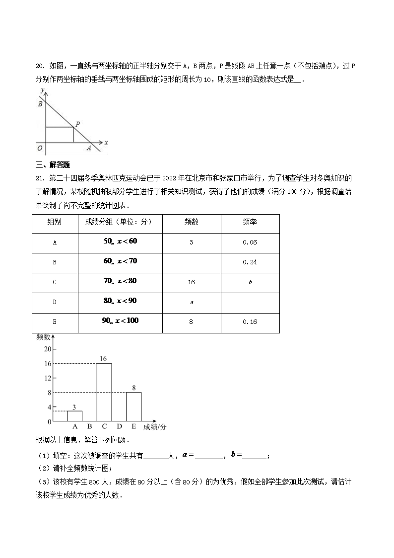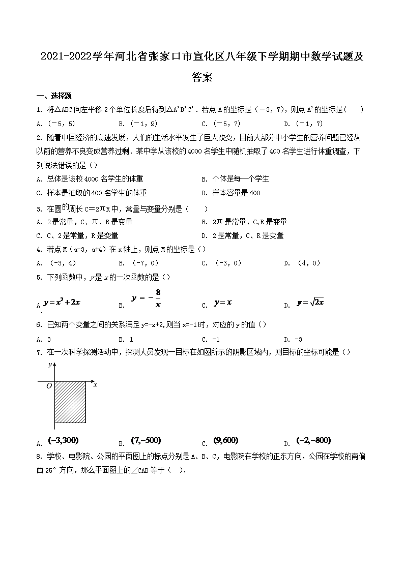 【文档预览】 文档大全网整理发布2021-2022学年河北省张家口市宣化区八年级下学期期中数学试题及答案(Word版),前五页预览如下: