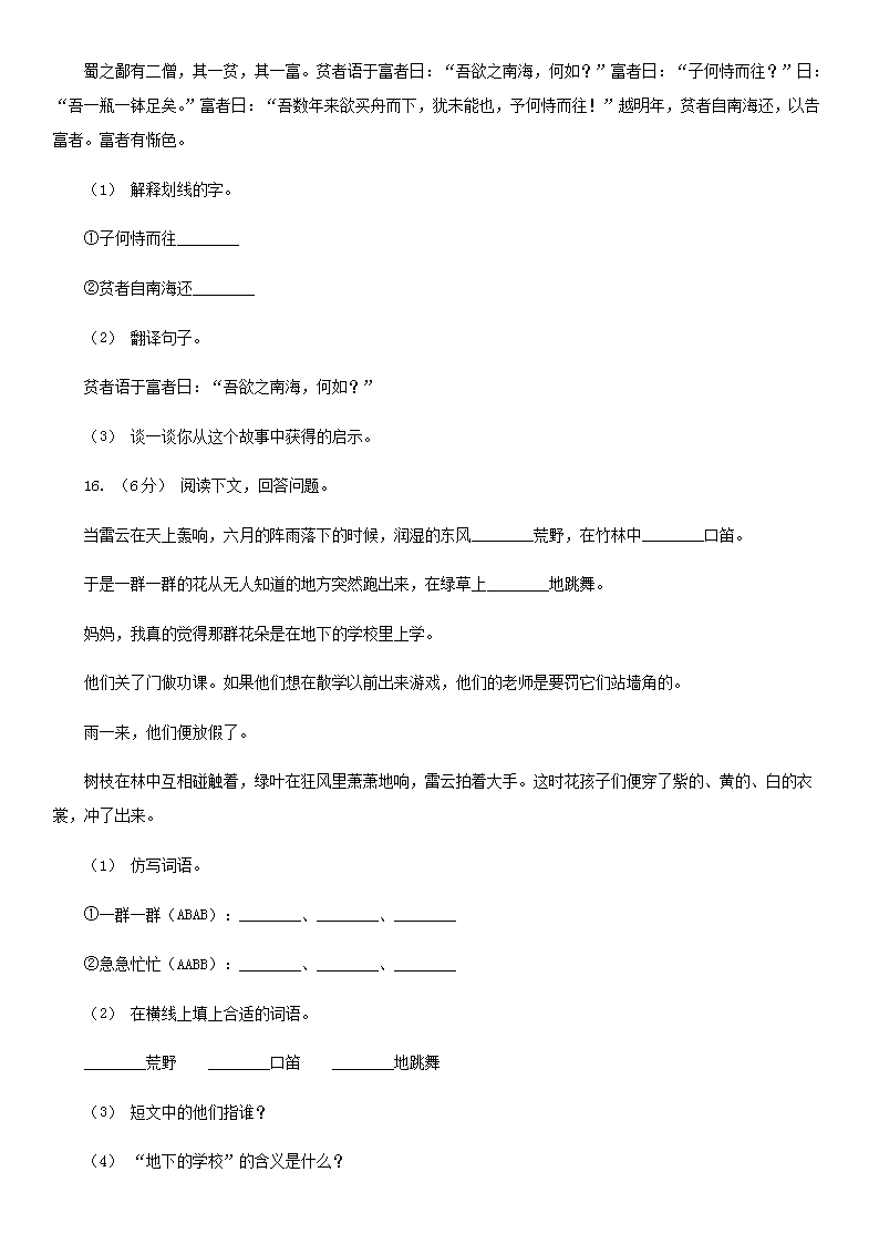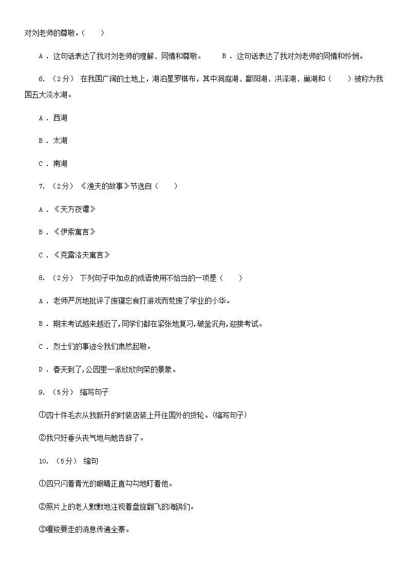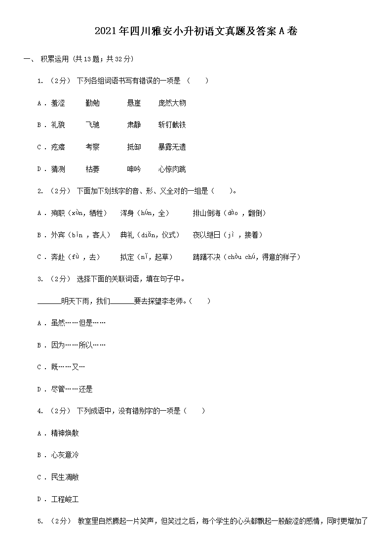 2021年四川雅安小升初语文真题及答案A卷(Word版)09-29
