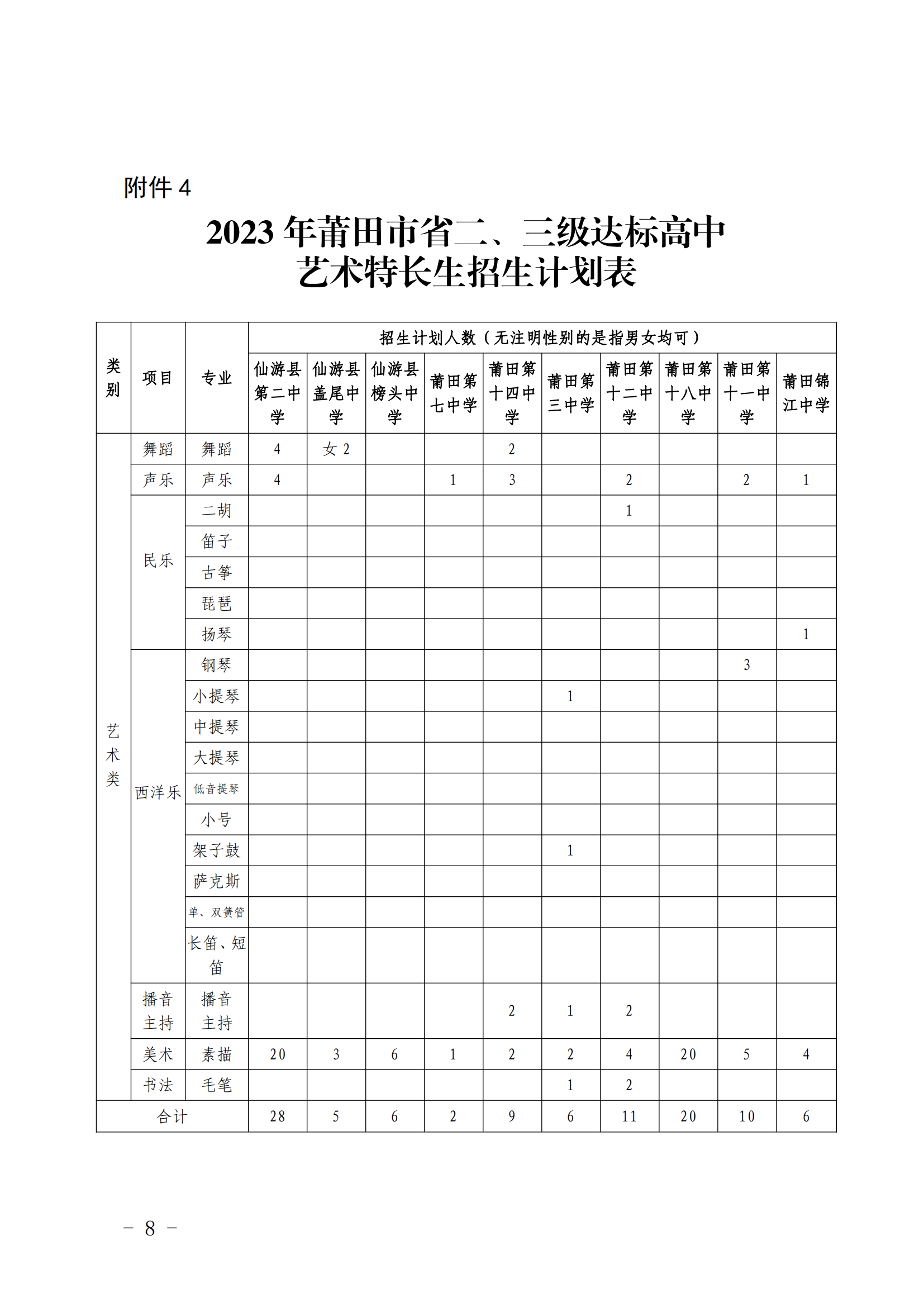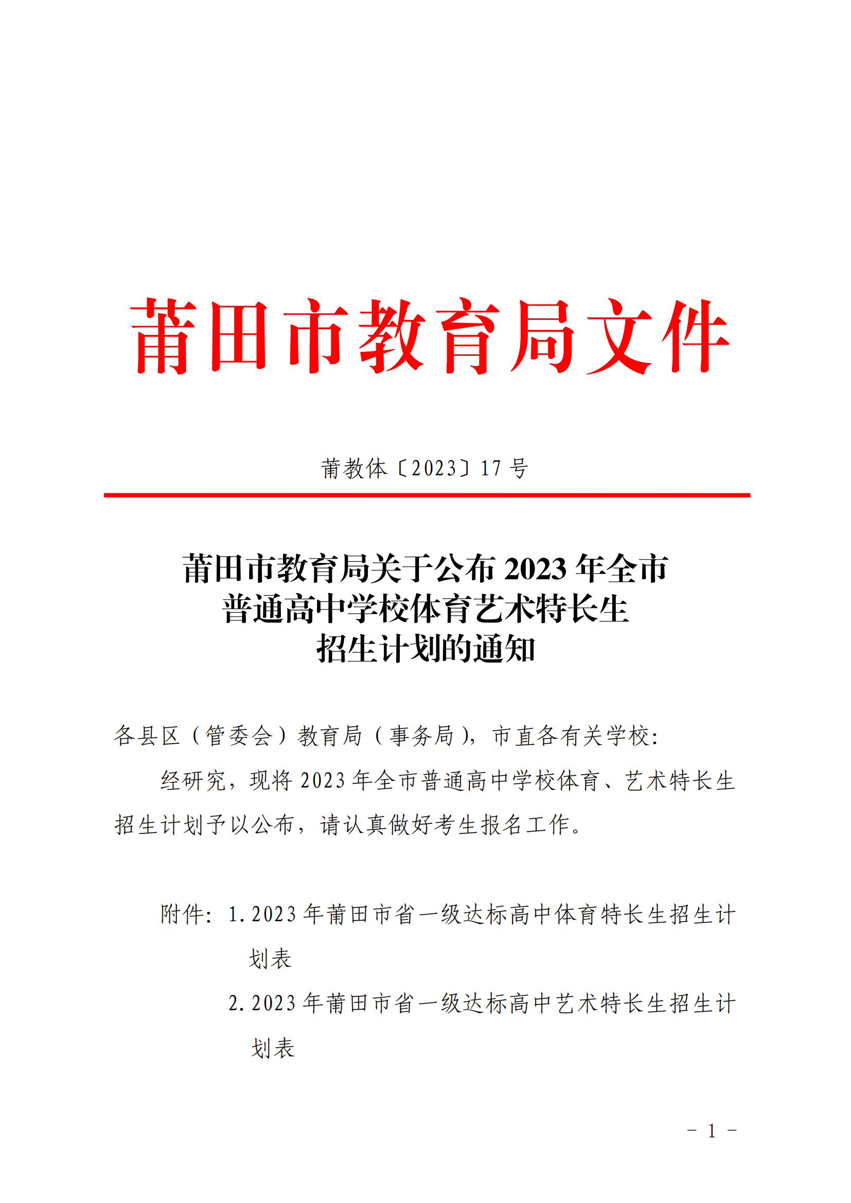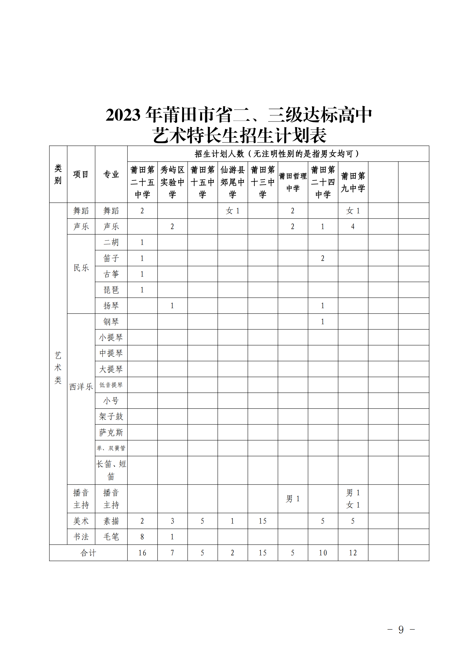 原文标题:莆田市教育局关于公布2023年全市普通高中学校体育艺术特长生招生计划的通知