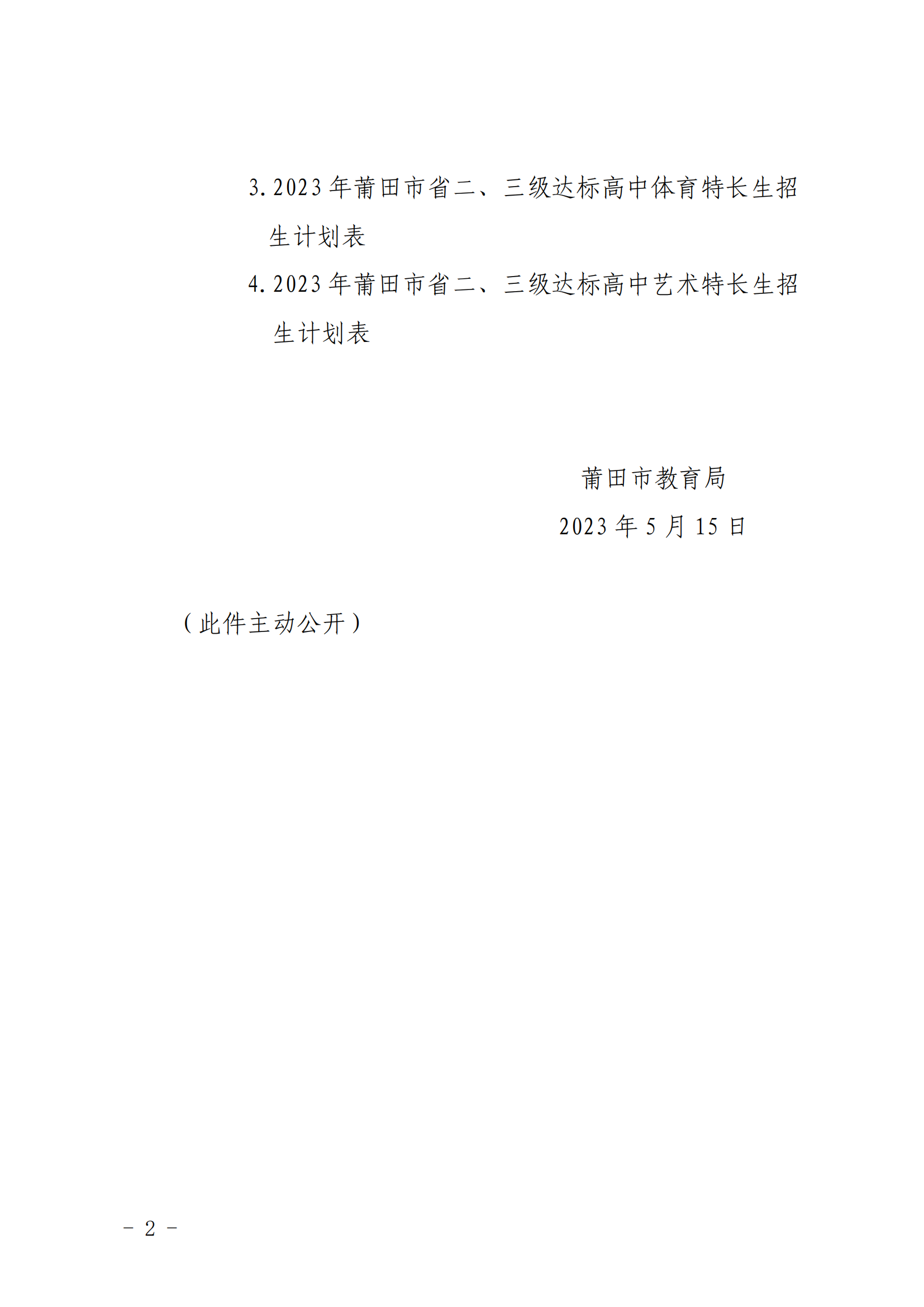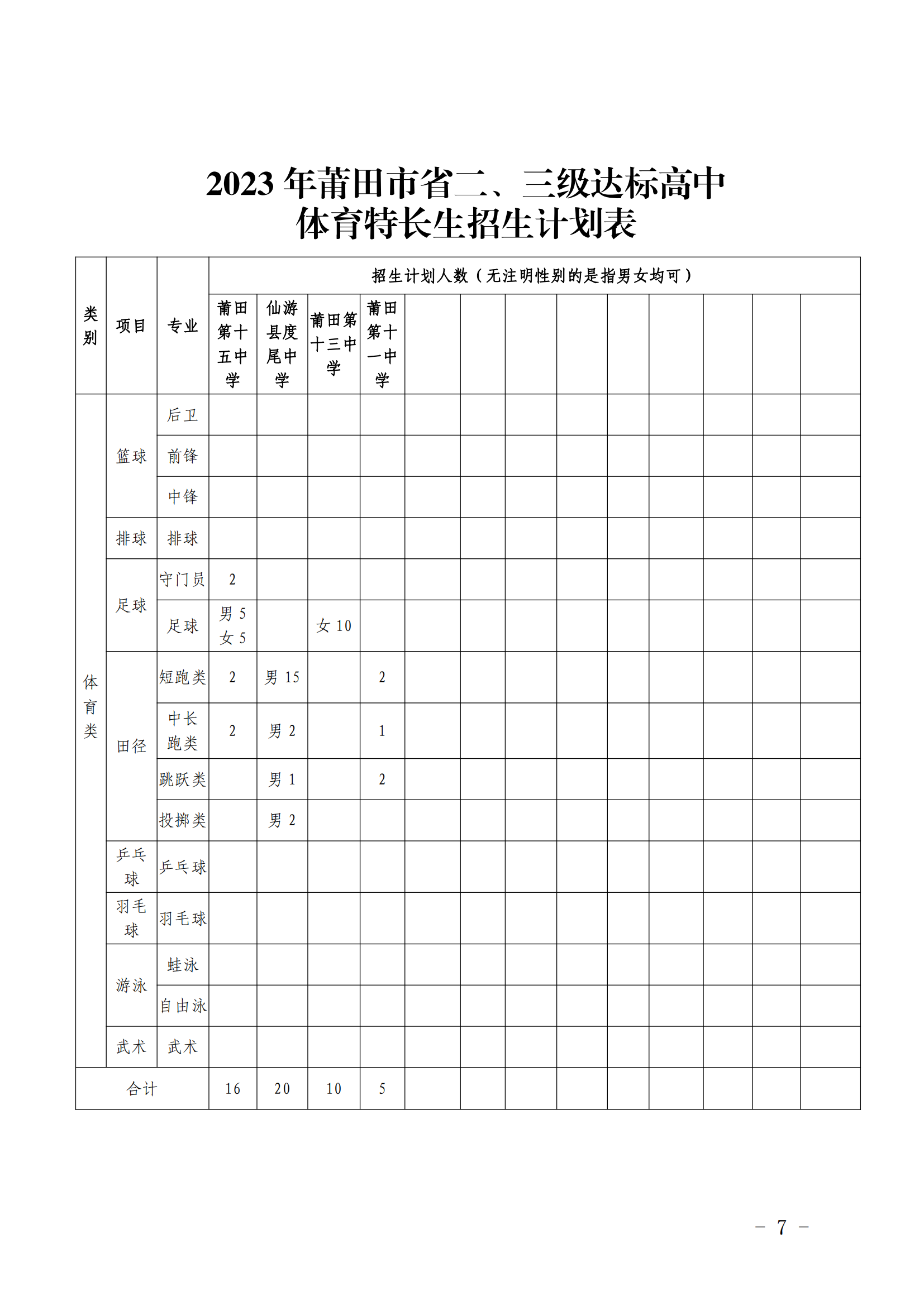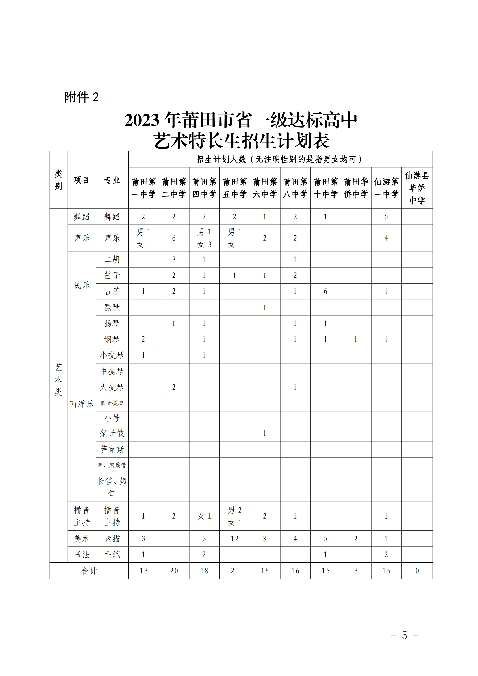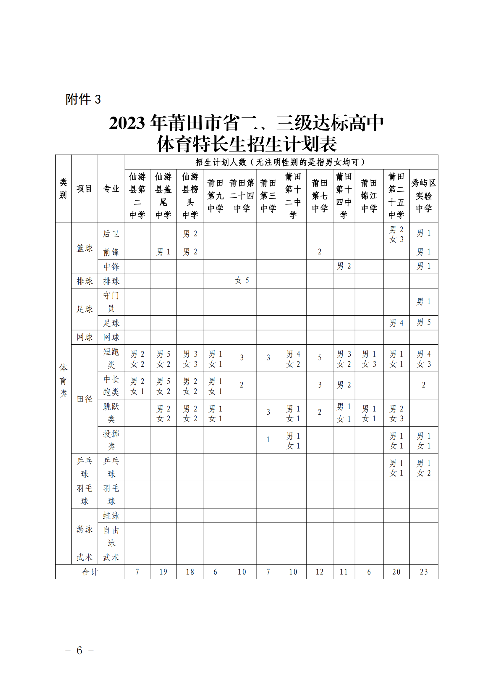 原文标题:莆田市教育局关于公布2023年全市普通高中学校体育艺术特长生招生计划的通知