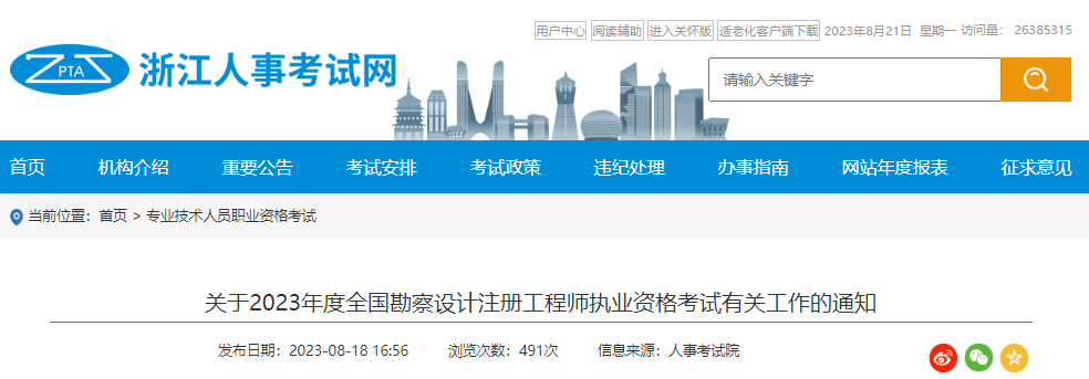 【#暖通工程师# 导语】©文档大全网从浙江人事考试网获悉,《2023年浙江勘察设计注册工程师执业资格考试报名通知》现已发布,2023年浙江暖通工程师报名时间:8月28日-9月4日,考试时间:11月4日-5日,©文档大全网小编现将报考信息发布如下: