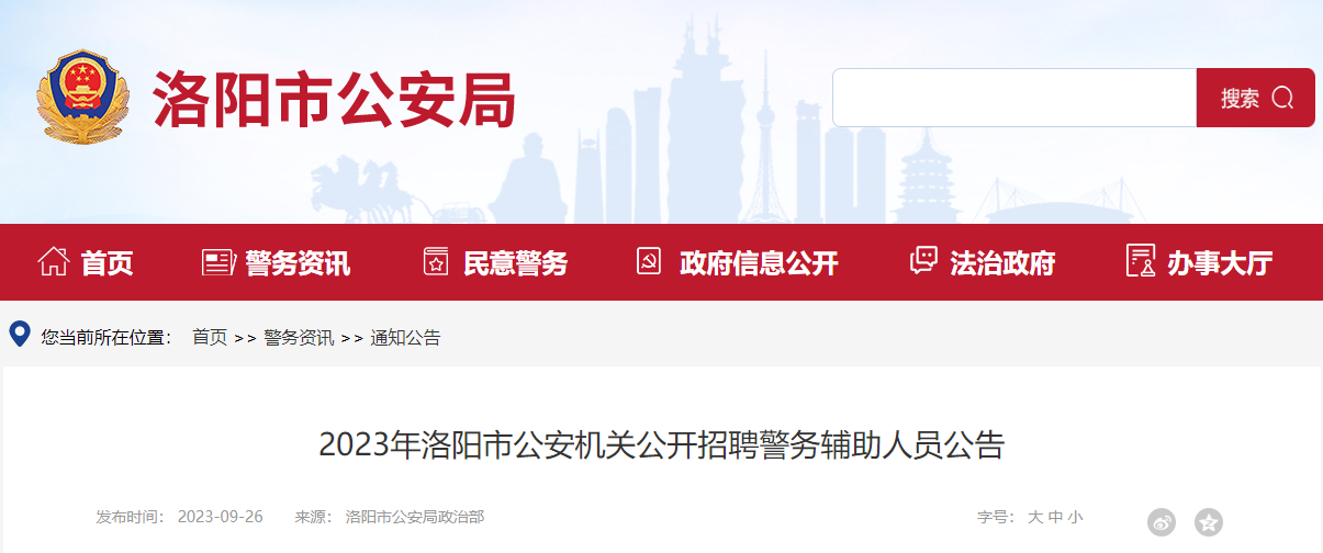 2023年河南洛阳市公安机关招聘警务辅助人员684名公告(10月6日-8日)09-28