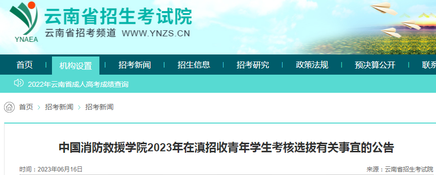中国消防救援学院2023年在云南招收青年学生考核选拔公告06-20