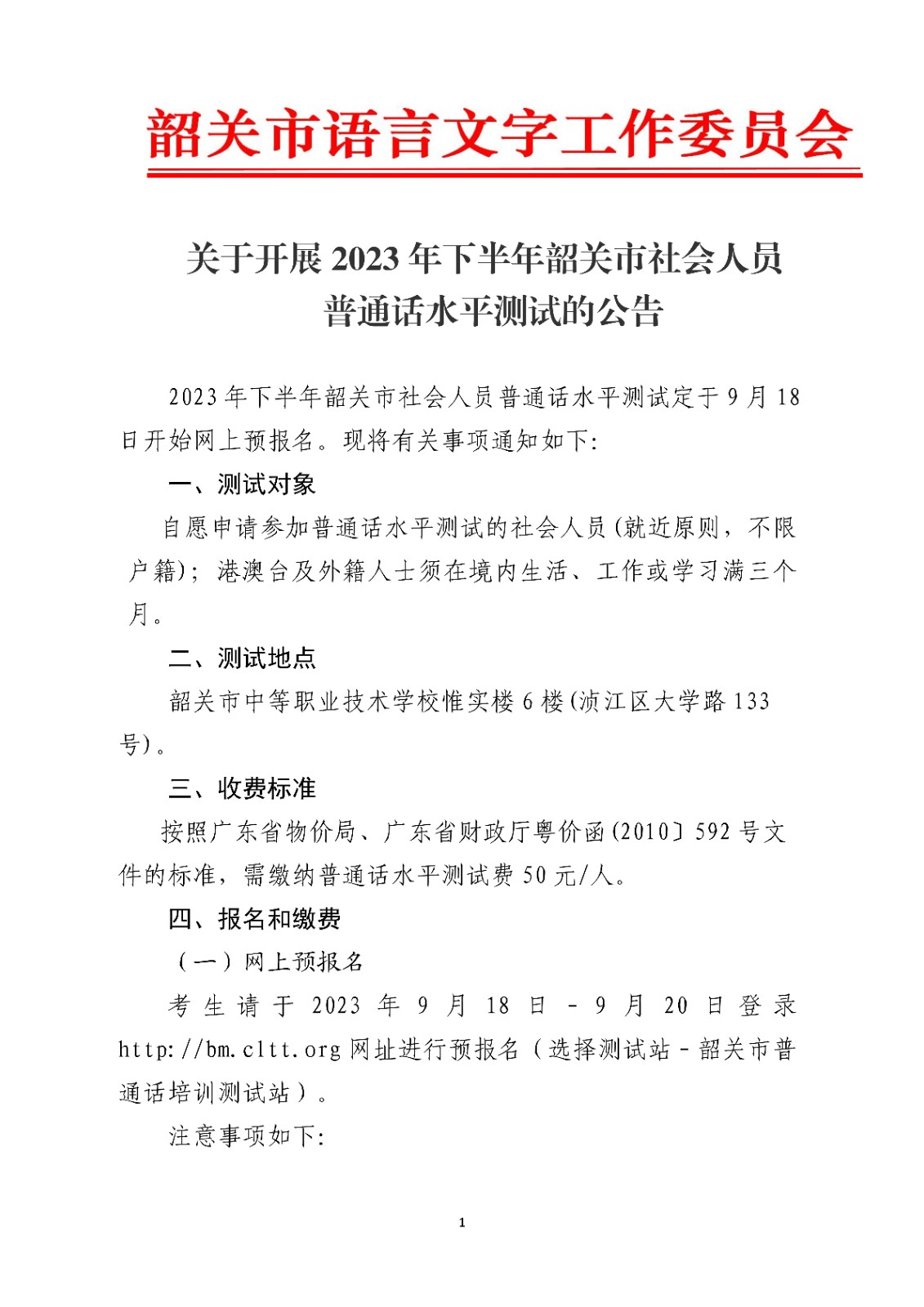 2023下半年广东韶关普通话考试时间10月16日起报名时间9月18日09-14