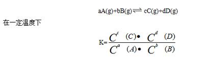 在一定温度下,当一个可逆反应达到化学平衡时,生成物浓度幂之积与反应物浓度幂之积的比值是一个常数,这个常数就是该反应的化学平衡常数(简称平衡常数),用符号K表示。
