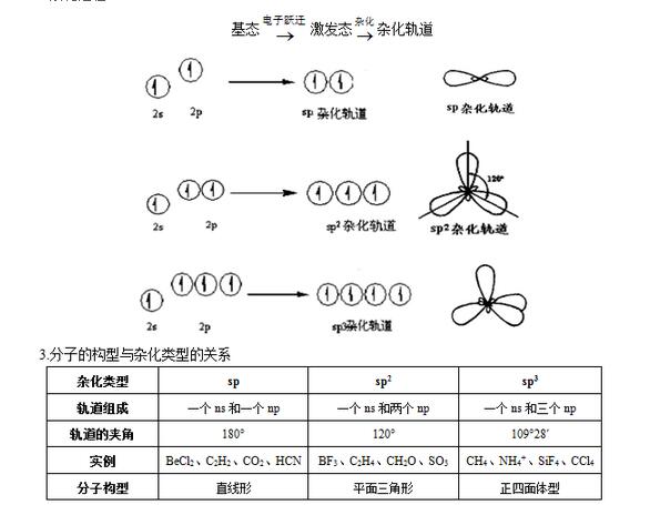 在形成分子时,若干不同类型、数量相近的原子轨道混合起来,在外界条件影响下,重新组合成一组新的原子轨道。这种轨道重新组合的过程叫做原子轨道杂化,所形成的新轨道就称为杂化轨道。