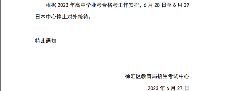 2023年上海徐汇区教育招生考试中心关于高中学业合格考期间对外接待安排通知06-28