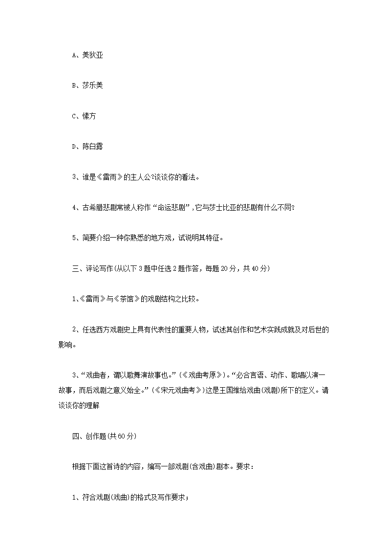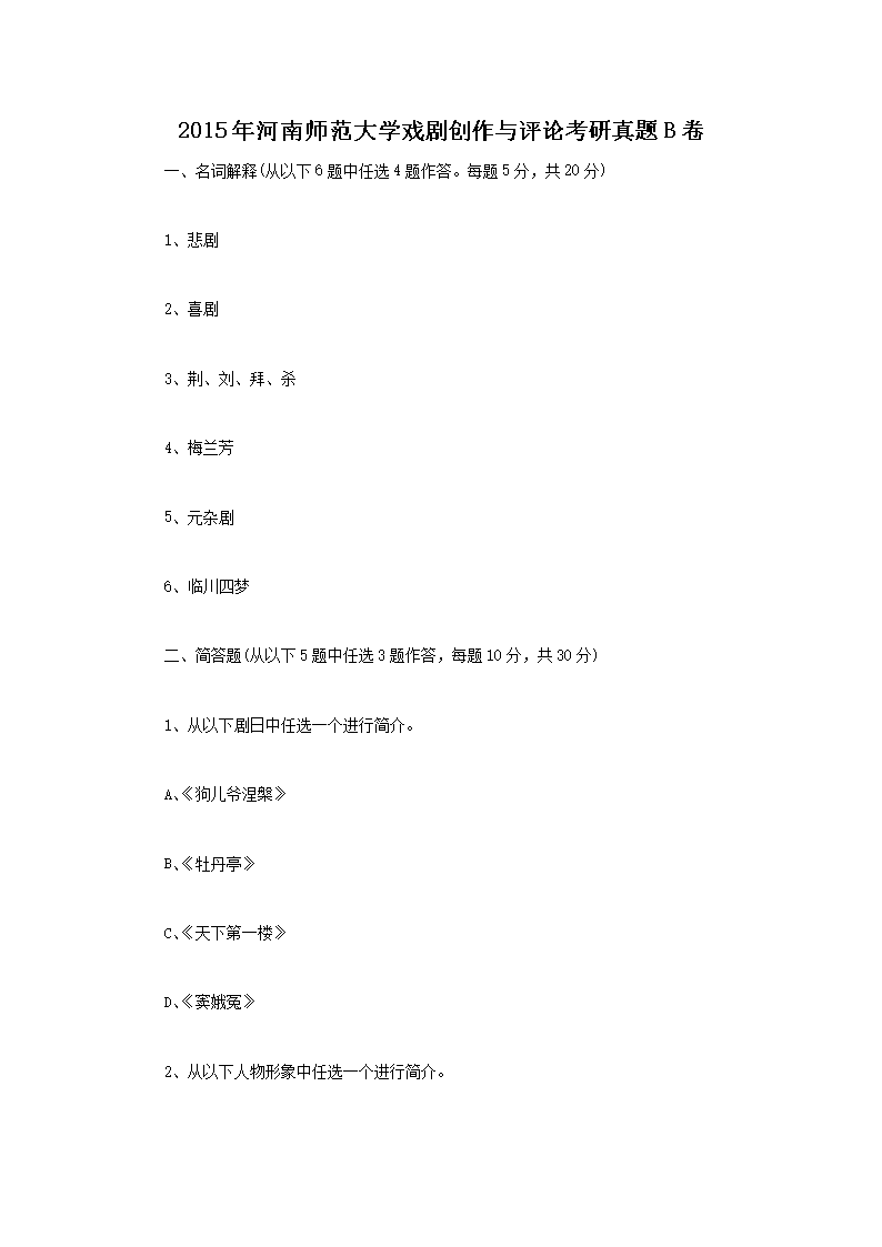 2015年河南师范大学戏剧创作与评论考研真题B卷(Word版)06-03