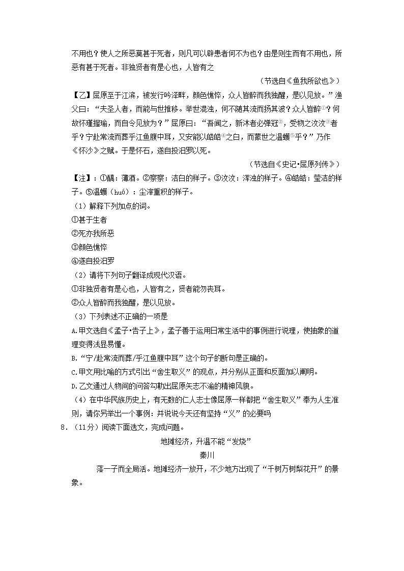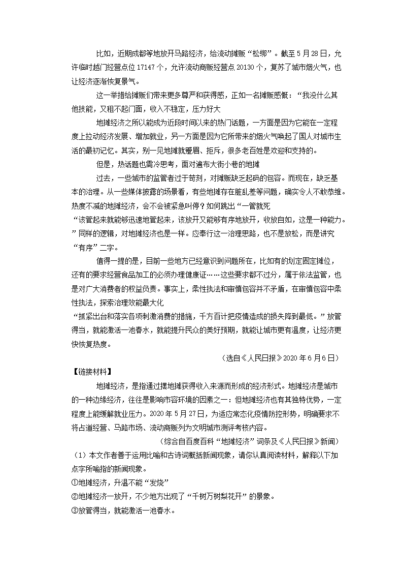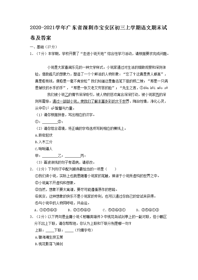 2020-2021学年广东省深圳市宝安区初三上学期语文期末试卷及答案(Word版)08-18