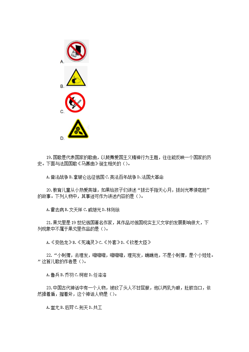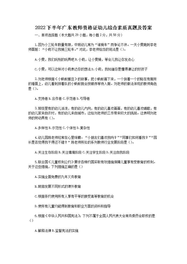 2022下半年广东教师资格证幼儿综合素质真题及答案(Word版)05-29