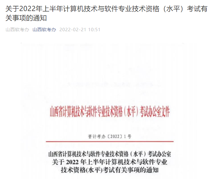 2022上半年山西计算机技术与软件专业技术资格(水平)考试工作通知05-02