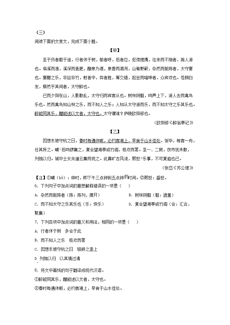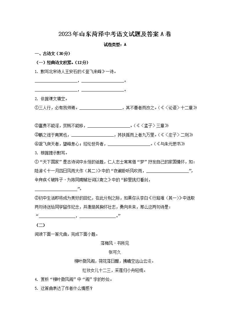 2023年山东菏泽中考语文试题及答案A卷(Word版)08-23