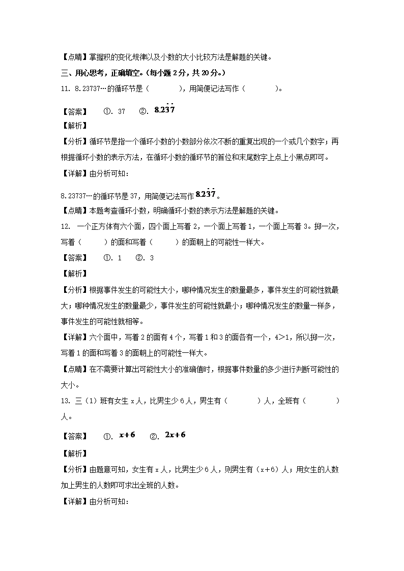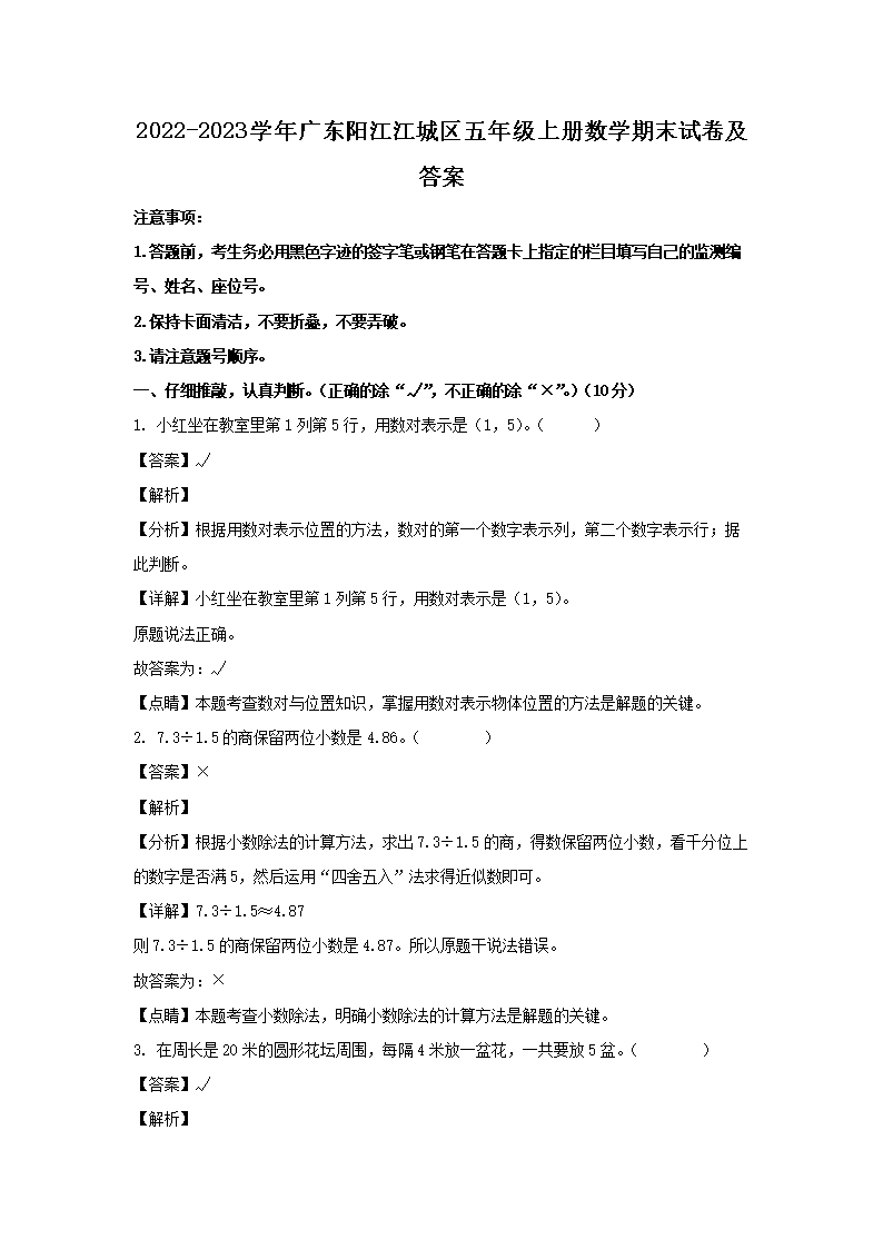 2022-2023学年广东阳江江城区五年级上册数学期末试卷及答案(Word版)09-13