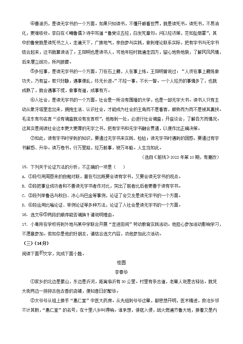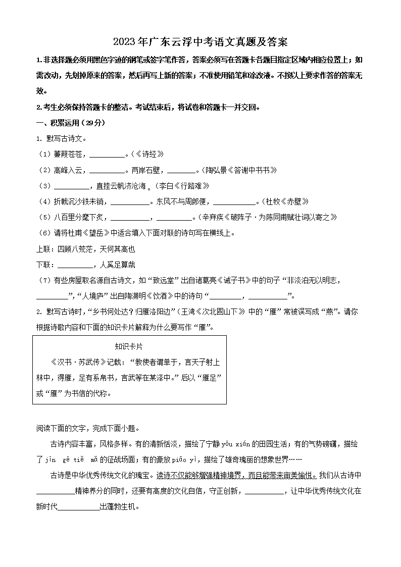 2023年广东云浮中考语文真题及答案(Word版)07-01