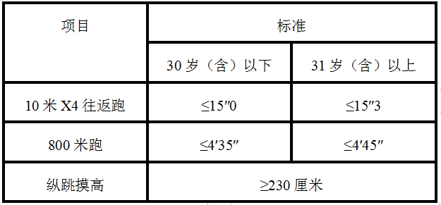 研究生及以上学历报考人员参加体能测评三项内容中有两项达标的,视为合格。非研究生及以上学历报考人员体能测评三项全部达标方为合格。