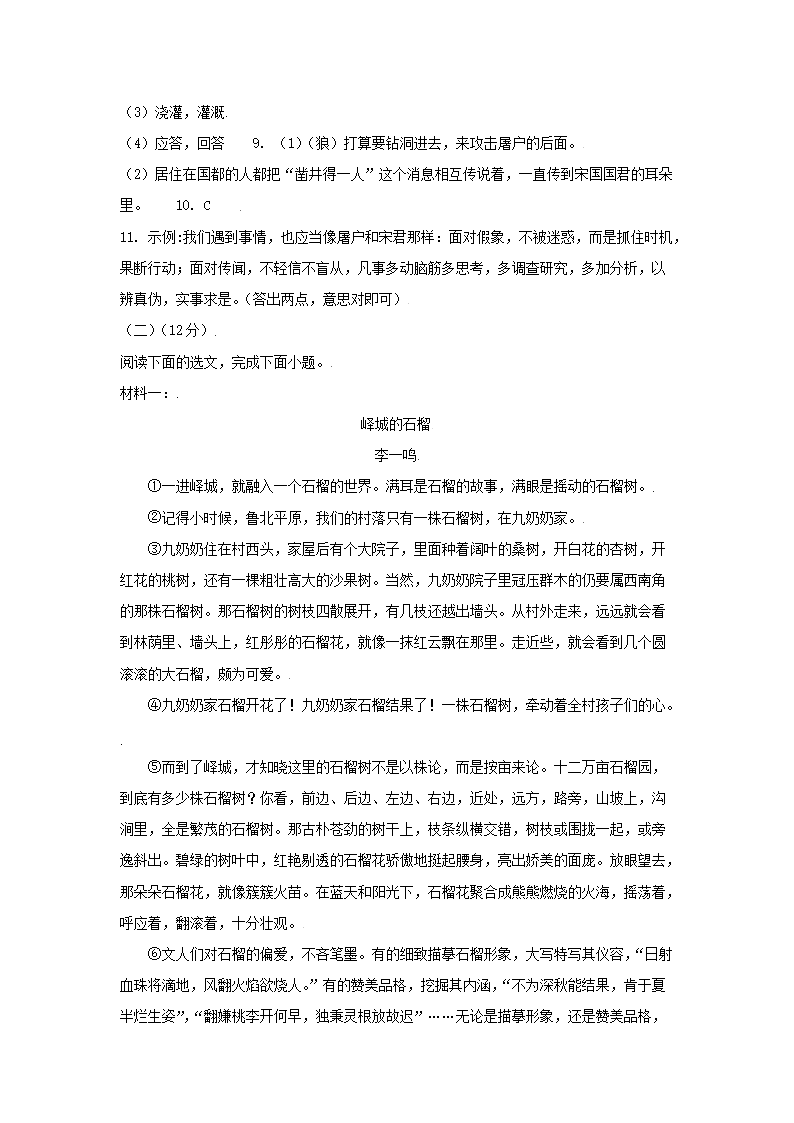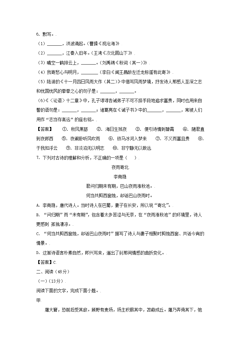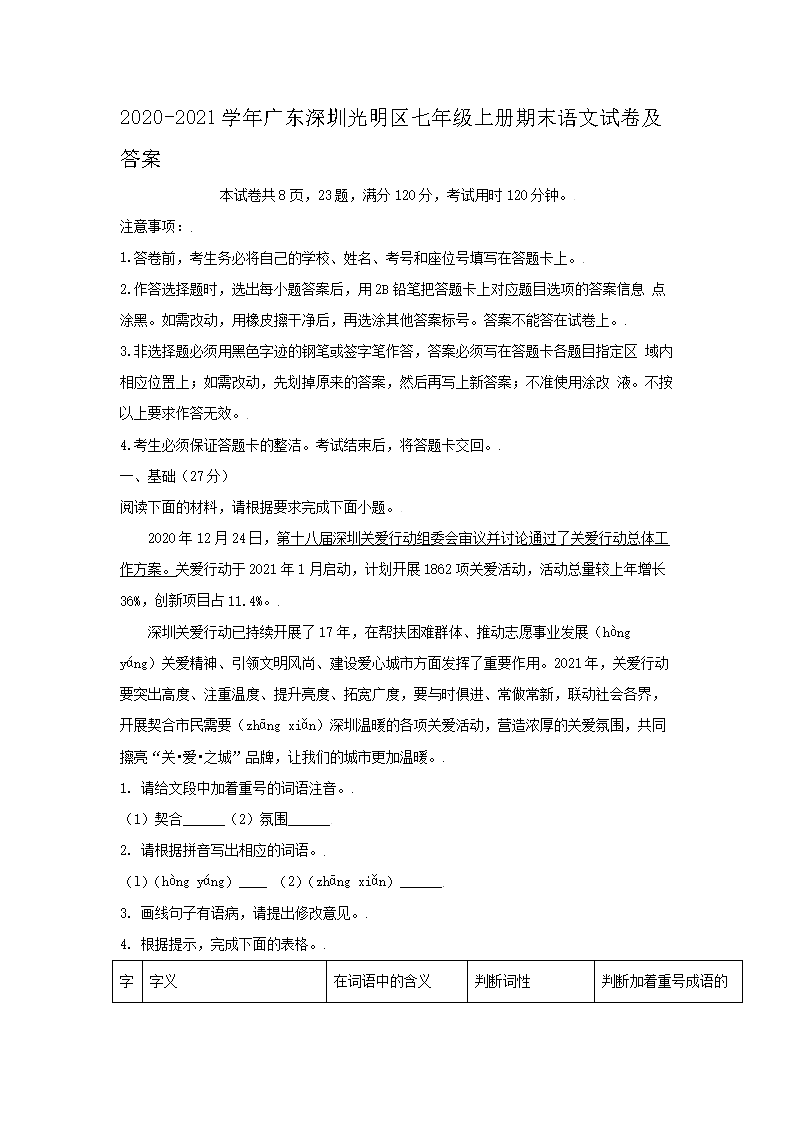 2020-2021学年广东深圳光明区七年级上册期末语文试卷及答案(Word版)09-27