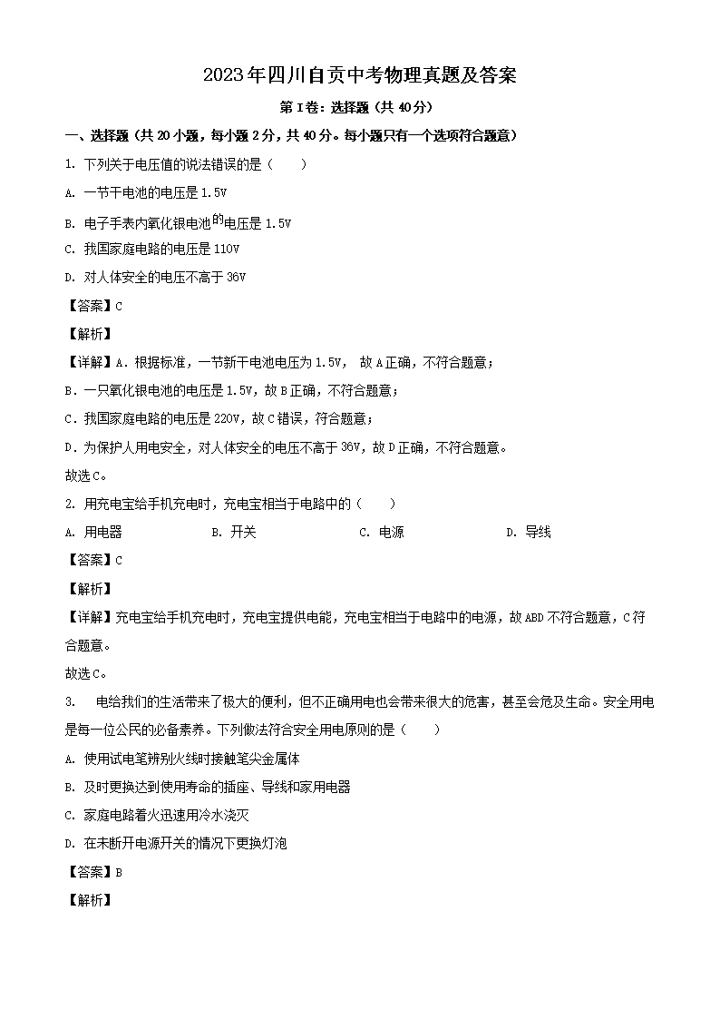 2023年四川自贡中考物理真题及答案(Word版)06-17