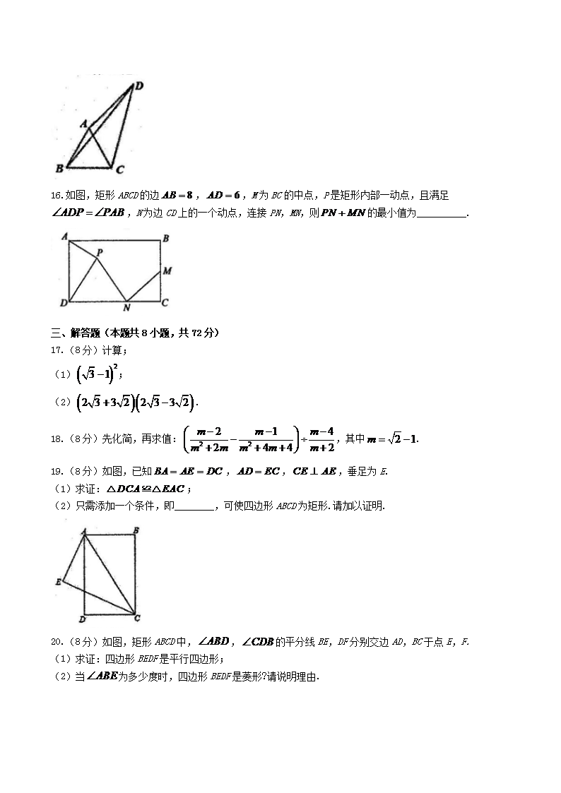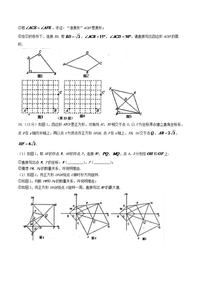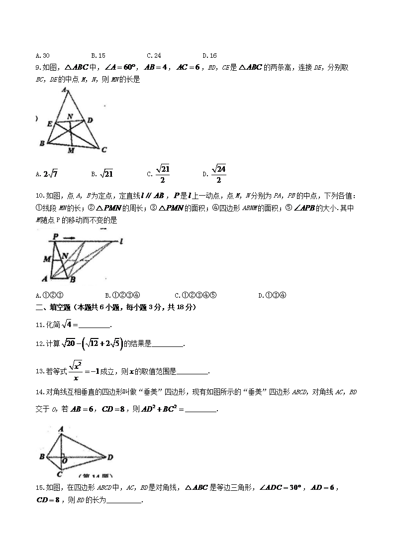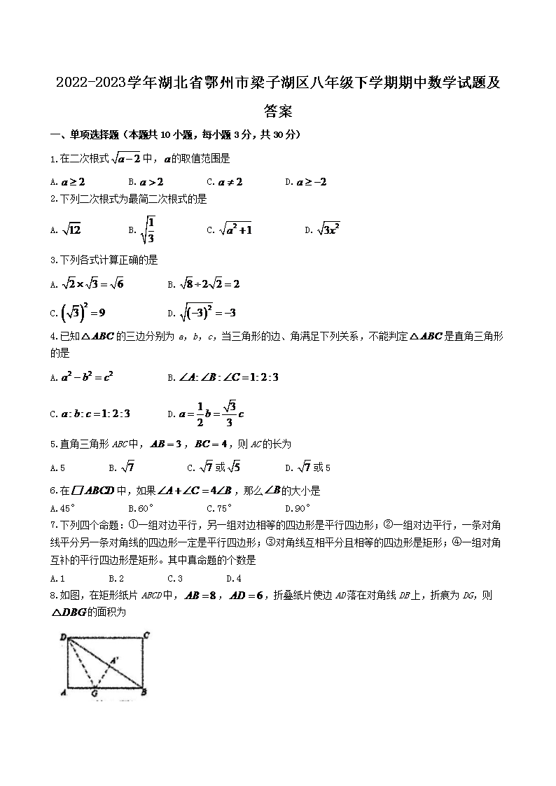 2022-2023学年湖北省鄂州市梁子湖区八年级下学期期中数学试题及答案(Word版)10-12
