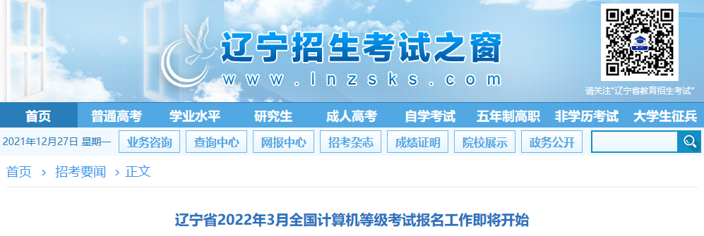 【点击报名:2022年3月辽宁计算机等级考试报名入口】