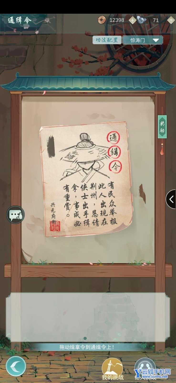 1.出游概率获得通缉令,也可以通过钱庄概率获得,通缉令可以在侠道右下角揭榜。