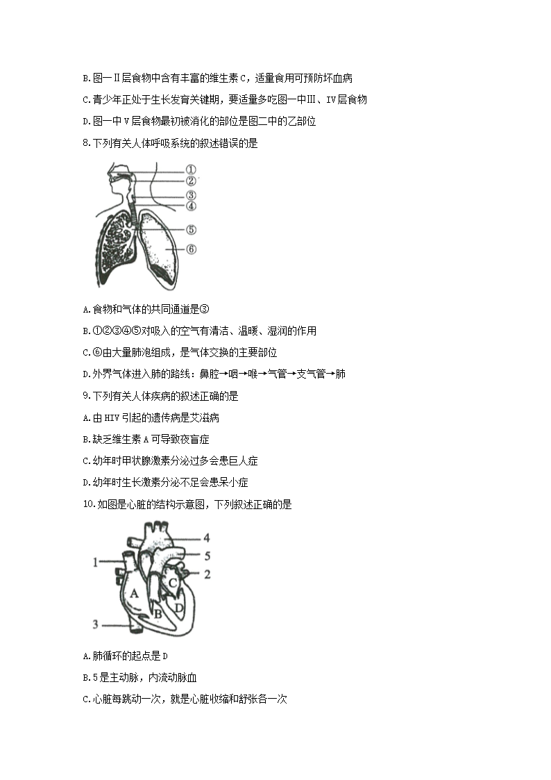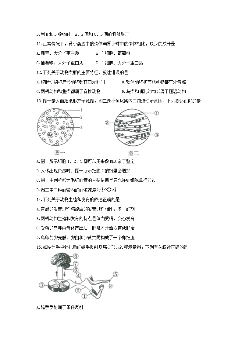 2023年山东济南中考生物试题及答案(Word版)08-09