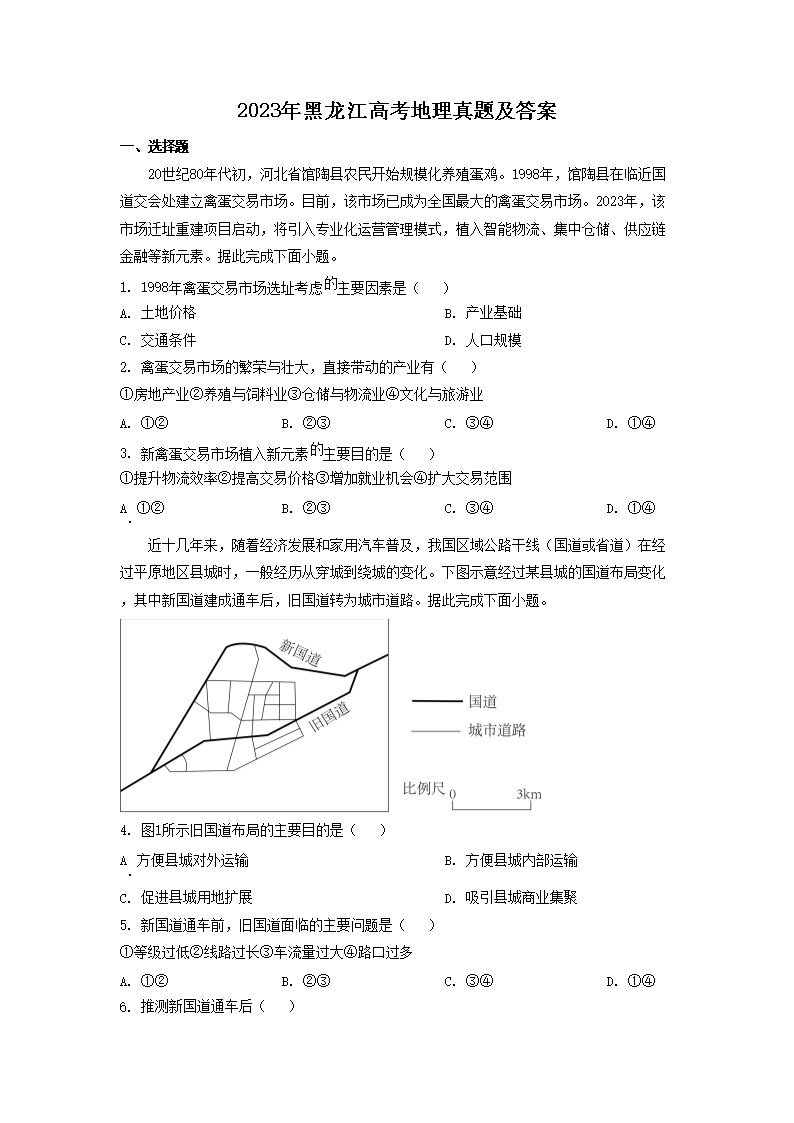2023年黑龙江高考地理真题及答案(Word版)06-13
