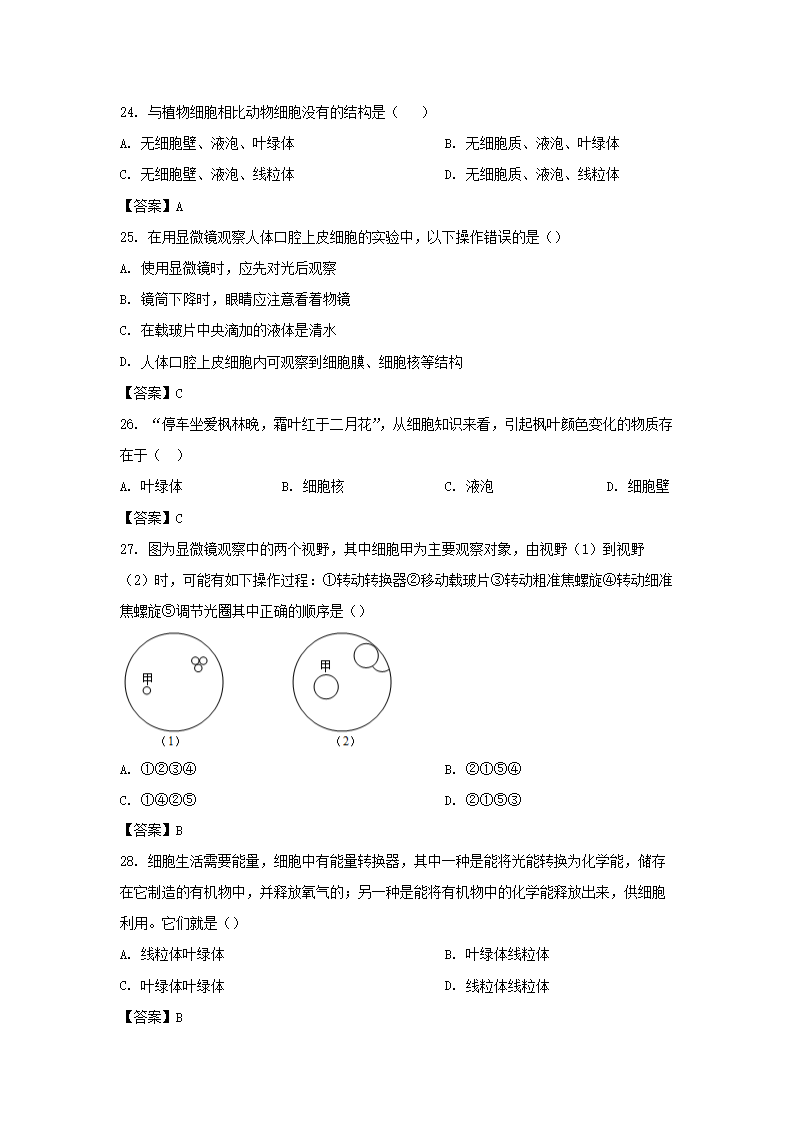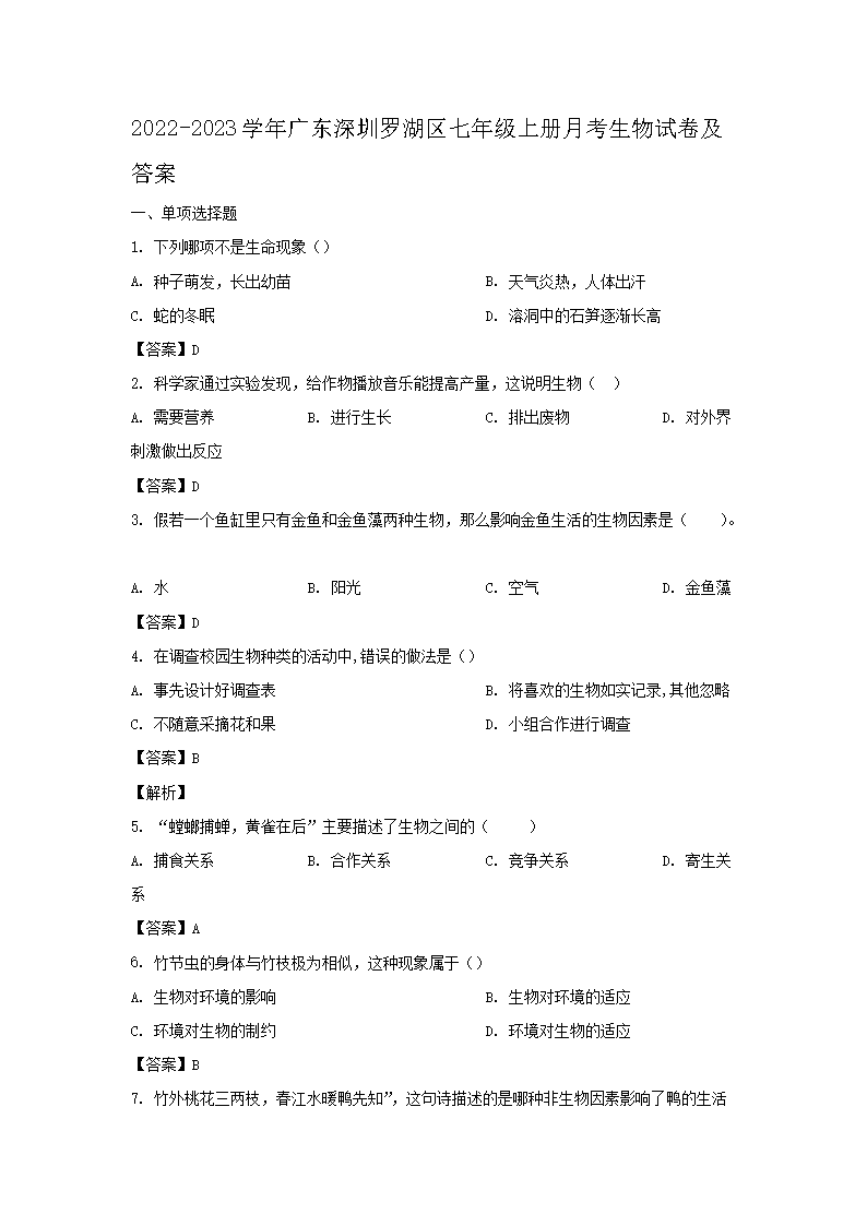 2022-2023学年广东深圳罗湖区七年级上册月考生物试卷及答案(Word版)09-22