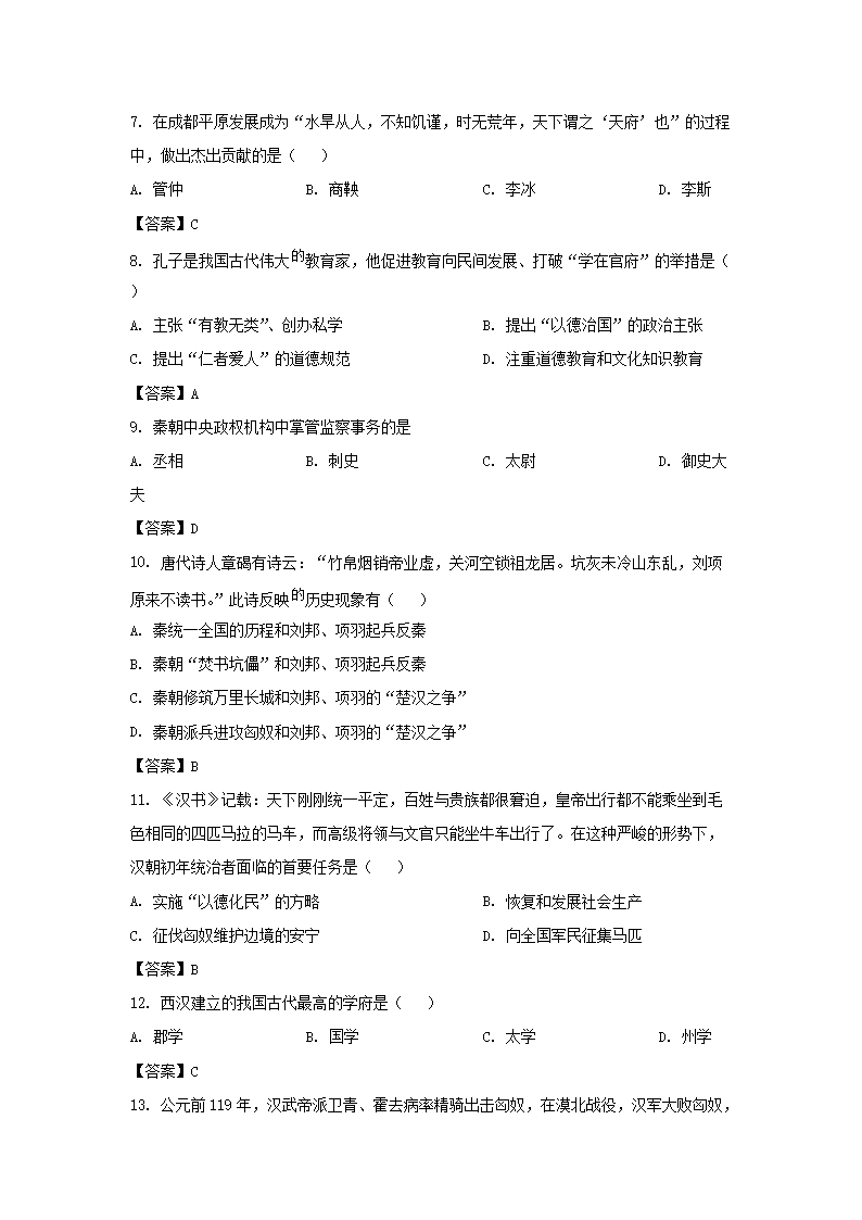 【文档预览】 文档大全网整理发布2020-2021学年广东深圳盐田区七年级上册期末历史试卷及答案(Word版),前五页预览如下:
