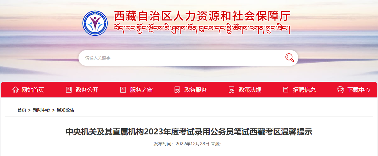 原文标题:中央机关及其直属机构2023年度考试录用公务员笔试西藏考区温馨提示